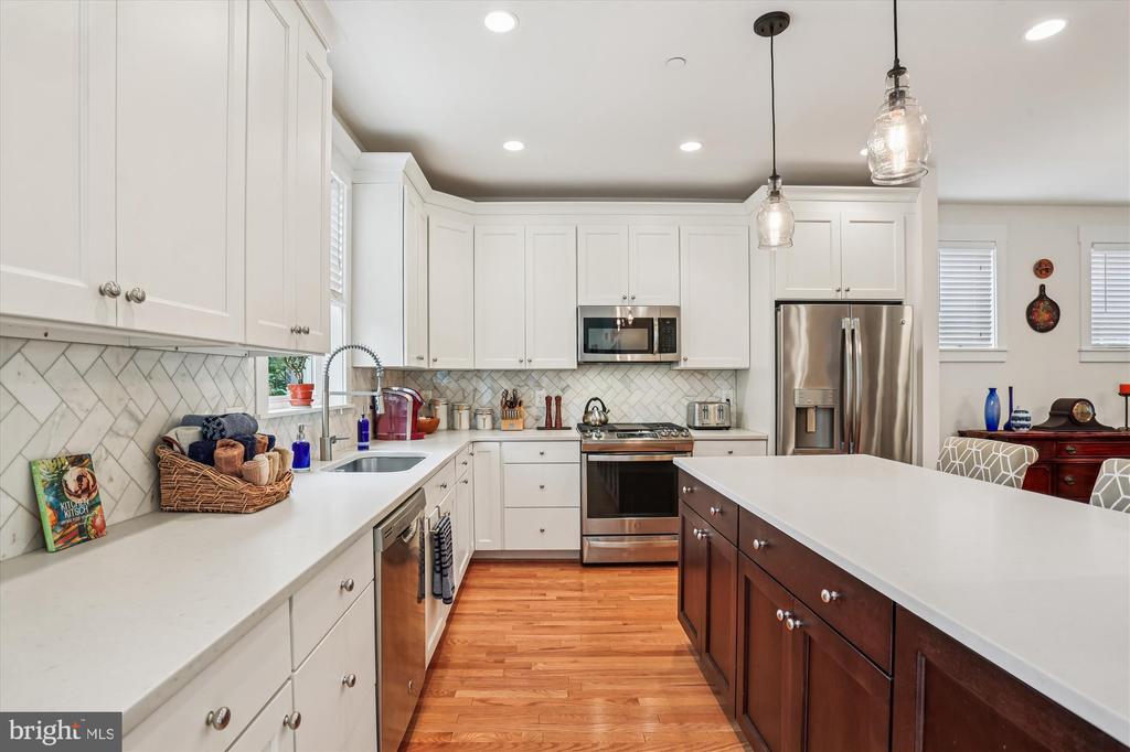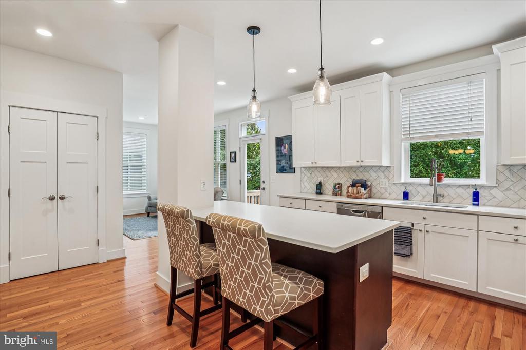 Welcome to this beautifully maintained detached home, built in 2014, offering modern finishes and versatile living spaces across three levels. A Trex-covered front porch invites you inside to a semi-open floor plan with abundant natural light. The entryway features a double-door closet, while the living room showcases wood floors & a cozy gas fireplace. The kitchen includes built-ins & a kitchen island, that opens to the family room with access to the back patio with extensive hardscaping. A dedicated office and powder room complete this level. The upper level spacious landing leads to the primary suite with a sitting area, multiple closets—including a large walk-in with built-in shelving—& the primary bath with a water closet, walk-in shower, and separate soaking tub. Bedrooms 2 and 3 share a Jack-and-Jill bath, and laundry is conveniently located upstairs. The walk out lower level (great as an in-law suite) features a bedroom with full bath, recreation room (including rough-in drain for potential kitchenette), & under-stairs closet, with both interior and exterior access for added convenience. Additional highlights include two-zoned HVAC, private fenced outdoor living space, perfect for entertaining. Off street parking plus a huge storage room. This lovely home is in move-in condition and is located between two metro stations and convenient to both downtown Silver Spring and Takoma Park.