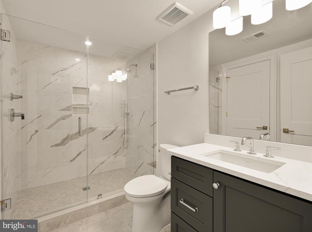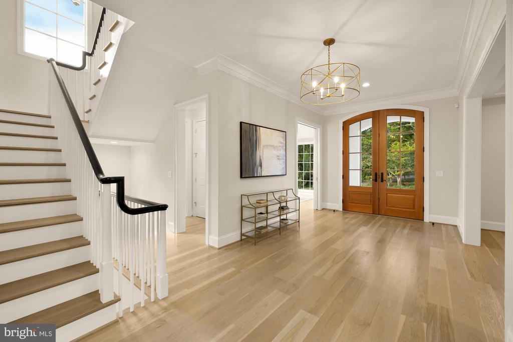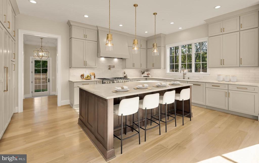 Developed by Foxhall Homes and designed by GTM Architects, this home is a rare opportunity to own an immaculately crafted new residence in the Arrowood enclave. Set on an exceptionally level 0.56 acre lot, this home offers 6 bedrooms, 5 full baths, 2 half baths, elevator to all levels, and almost 7,700 square feet of thoughtfully executed living space—ideal for buyers who demand both refinement and flexibility. Enter through 8-foot mahogany double doors into a gracious foyer leading into a balanced layout that supports both daily family life and grand entertaining. The kitchen anchors the home: 8′ island with inset cabinetry, leathered Taj Mahal quartzite, two dishwashers, Sharp microwave drawer, 54″ JennAir column refrigerator/freezer and the 48″ BlueStar gas range with custom enameled grey white finish, brass trim and Brizo pot filler. At least five Iron Chefs use BlueStar in their personal kitchens because of the 22,000+ BTU open burners, integrated wok cooking, and 1,850 degree infrared broiler. The family room, bathed in natural light, features a Scagliola precast mantel (Francois & Co.) and opens to a 19′ 14′ screened porch overlooking the slate patio with gas grill port and level yard—an ideal transition from indoor to outdoor living. Designed for modern convenience, the mudroom includes built in cubbies, half bath, secondary washer/dryer, and direct access to the 3-car garage, driveway, back porch, and a rear stair to the upper level. The primary suite is a quiet sanctuary, offering custom inset cabinetry, Kallista fixtures, heated floors, soaking tub, and a 7.5-foot deep two-person shower with thermostatic controls. Library with built-in cabinetry, Vancouver quartzite countertop, bay window, and southern exposure. The lower level supports versatile living: with 8′9″ ceilings, dedicated theater room with integrated Klipsch surround sound, wraparound wet bar, gym/flex space, and a sixth bedroom with connected bathroom—perfect for guests, teens, or multigenerational households. The list of intelligent infrastructure and elevated finishes is extensive and includes: Andersen 400 Series Low-E casement windows with simulated divided lites, Tri-zone Carrier HVAC with 90%+ efficient gas furnaces, Ecobee thermostats, Aprilaire 800 steam humidifier, and media air filters, Epoxy-sealed garage floor and EV charging capability, LiftMaster Secure View Ultra-Quiet Belt Drive Garage Door Openers with Cameras, LED Corner to Corner lighting, and battery backup; Comprehensive Cat6 + HDMI wiring throughout, Klipsch speakers in the Kitchen, Dining, Screened Porch, Rec Rm and Exercise Room, WiFi Mesh network, Security System, Video door bell rough-in, and landscape lighting, Solid core interior doors with Emtek hardware, Sound attenuation insulation around bathrooms and master bedroom, High-end millwork and meticulously executed trim and detailing, Lighting from Visual Comfort featured throughout the home, Savaria Eclipse elevator with automatic internal door to all three levels. 9117 Redwood Avenue is designed to offer both prestige and purpose: elegant finishes, smart infrastructure, and flexible spaces for family life, all in one of Bethesda’s most desirable addresses.