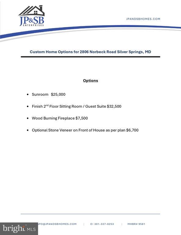 Your dream home starts here. Welcome to 2806 Norbeck Road, where a rare half-acre lot (0.59 acres / 25,904 sq. ft.) in the heart of Silver Spring’s Norbeck Meadows community invites you to create the home you’ve always imagined. Nestled among mature trees, this tranquil setting offers the perfect canvas for your vision — whether that’s a modern farmhouse, a classic colonial, or a one-of-a-kind retreat designed around your lifestyle. This is more than land — it’s possibility. Picture morning coffee on your porch, laughter in the backyard, gardens in bloom, and a home built exactly the way you’ve always wanted. Our award-winning custom builders are ready to bring your dream to life with craftsmanship, quality, and the attention to detail this incredible location deserves. The planned home design features 9-foot ceilings, a main level of approximately 1,833 sq. ft., an upper level of 1,624 sq. ft., and a lower level of about 1,750 sq. ft., offering over 5,200 total square feet of open, flexible living space ideal for today’s lifestyle. The property is zoned R-200, making it ideal for a spacious single-family residence with room to expand and grow, providing privacy and flexibility for future additions or outdoor living. Ideally located just minutes from Rock Creek Park, Olney, Wheaton, and major commuter routes, including Georgia Ave, Connecticut Ave, and ICC/MD-200, this location combines the quiet of suburban living with easy city access. Opportunities like this are scarce in Silver Spring. Make 2806 Norbeck Road the address where your vision becomes reality.