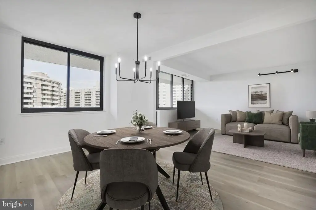 Luxury meets convenience in this thoughtfully renovated 2-bedroom, 2-bathroom condo at The Carleton. The open layout and uniform, wide-plank LVP floors create a warm and inviting flow. Sleek quartz countertops and premium stainless-steel appliances complete the kitchen next to a dining area. The spacious living room opens to a private terrace—perfect for a morning coffee or evening entertaining. An in-unit washer and dryer bring comfort and convenience to daily life. The primary bedroom has plush, brand new carpeting over luxury vinyl plank flooring and an oversized walk-in closet. The spa-inspired en-suite bathroom is modern and elegant. A second bedroom with built-in shelving and sophisticated hall bathroom complete this move-in ready home. One assigned garage parking space included. The Carleton is located minutes from Friendship Heights and the D.C. line, with easy access to the Metro, shopping, dining and all of the area’s best amenities. The Carleton offers resort-style living with a fitness center, outdoor pool, sauna, doorman, concierge, party room and more!