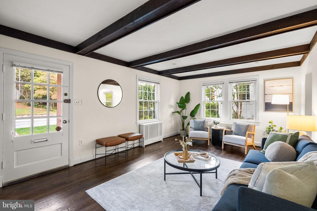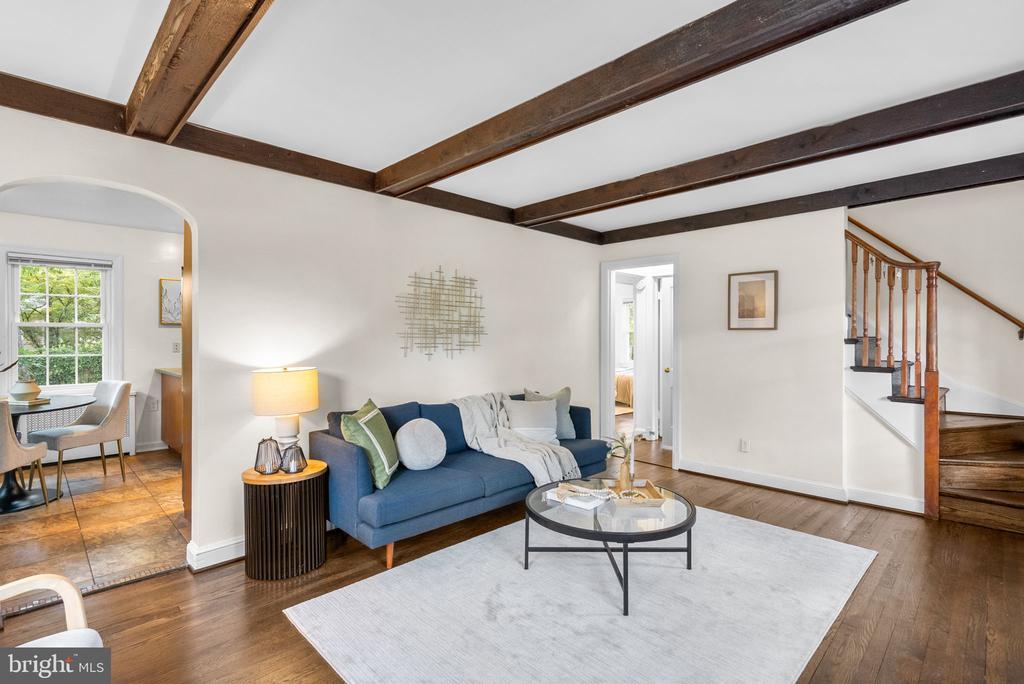 OPEN Sunday 11/9 from 12 - 2 PM. Welcome to this charming Cape Cod in the heart of Woodmoor, full of character inside and out! Step through the front door into the inviting living room with freshly refinished hardwood floors and exposed ceiling beams that add warmth and style. The kitchen, open to both bar seating and a dining area, overlooks the fabulous, grassy, backyard. Two bedrooms and a full bath complete the main level, including one bedroom with unique lattice-style ceiling beams. Upstairs offers two additional bedrooms, including the spacious primary, along with a second full bath. The backyard is a true retreat with a large flat grassy area, a stately oak tree providing shade, and a serene koi pond. Basement access is from the rear yard, offering laundry and generous storage space. A wonderful opportunity to own a classic Woodmoor home with a picturesque setting!