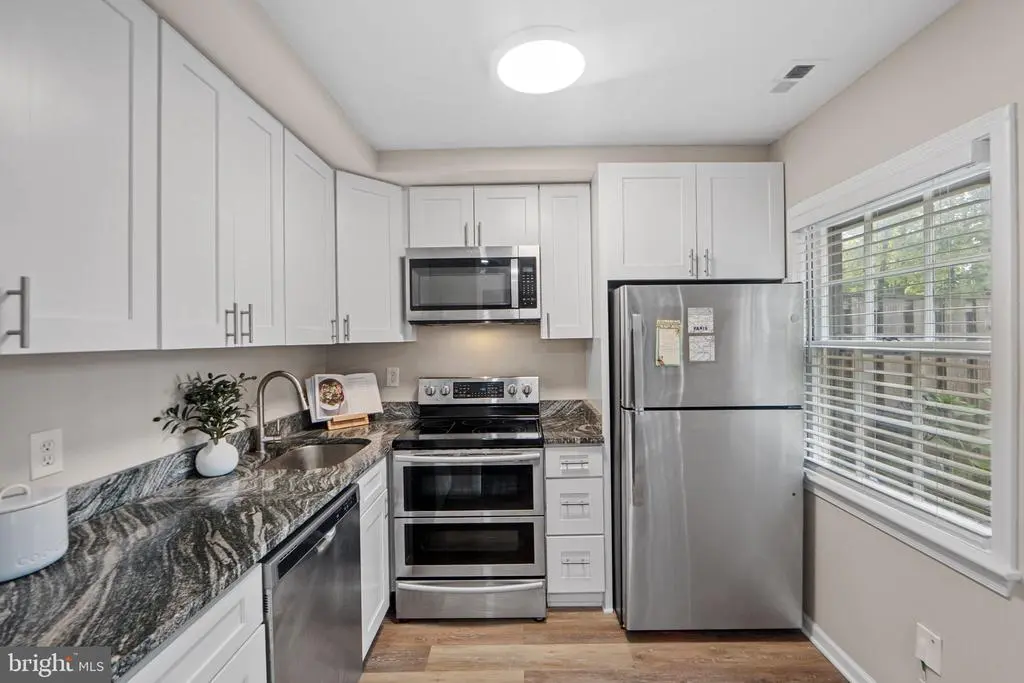 Welcome home to 881 Azalea Dr, a beautifully updated townhome-style condo in the sought-after Regent Square. This 2-bed, 1.5-bath residence has been thoughtfully renovated to combine timeless charm with modern comfort. The 2019 renovation included a completely redone kitchen with marble countertops, remodeled bathrooms, new appliances, and an upstairs washer/dryer. The layout was opened to create a seamless flow between living spaces with recessed lighting and updated floors. Recent upgrades include a 2020 HVAC system, 2021 LG refrigerator and Samsung Flex Duo oven, new laminate flooring in 2023, and duct cleaning with UV purification. Out back is a private patio—ideal for outdoor meals, relaxing, or gardening. The Rockville Metro, I-270, and Rockville Town Center are just minutes away. This home offers a peaceful, tree-lined setting within walking distance to Woodley Gardens Shopping Center, community parks, and recreational amenities including baseball, basketball, volleyball, and tennis courts surrounded by open green space.