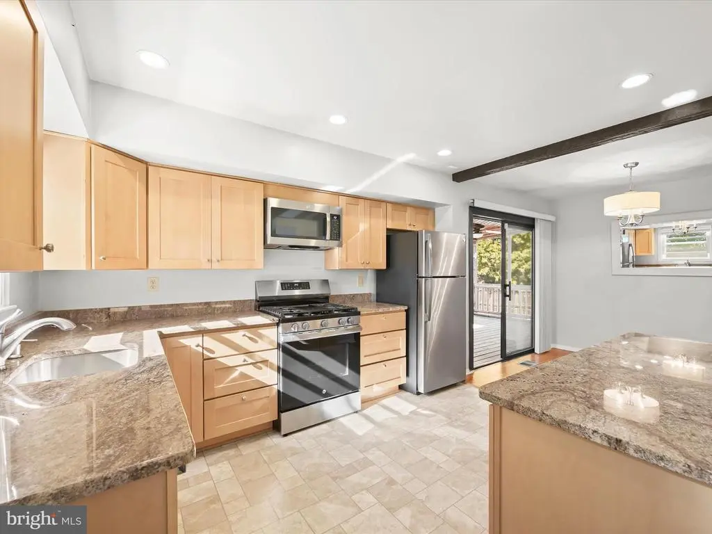 Updated & Spacious Rancher in Rockville's Sought-After Brookhaven Community. This beautifully updated home offers comfort, charm, and convenience in one of Rockville’s most desirable neighborhoods. Thoughtful upgrades throughout include new windows, updated bathrooms, remodeled kitchen, enhanced lighting, new fencing, patio, and more. Sunlight fills the main level, showcasing gleaming hardwood floors throughout the living and dining areas. The living room features a large bay picture window, while the dining room includes built-in shelving and opens to an expansive screened porch, perfect for relaxing or entertaining. The updated kitchen impresses with granite countertops, a peninsula island, wood cabinetry, stainless steel appliances, and recessed lighting. Hardwood floors continue into all three bedrooms, complemented by an upgraded full bath. The spacious lower level offers a large recreation room with a rustic exposed wood beam ceiling, built-in wet bar, bookcases, a separate game room or home theater, a second full bath, and abundant storage. Enjoy your own private retreat, an entertainer’s dream featuring a flagstone patio, custom grill station, privacy fencing, and a beautifully landscaped backyard complete with a storage shed. Ideally located near Glenmont Metro, this home offers easy access D.C., Bethesda, and beyond. Within 1.5 miles, you’ll find two major shopping centers and a Home Depot for all your daily needs. Outdoor enthusiasts will love the nearby Matthew Henson Trail, a 4.5-mile scenic path that’s part of a regional trail system connecting to Rock Creek Trail, perfect for biking, running, or a peaceful stroll. This move-in-ready gem has it all!
