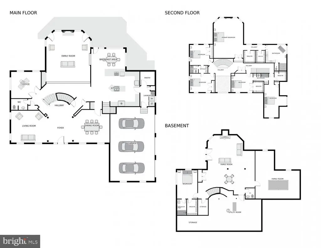 New Roof and gutters! Welcome to 9914 Woodford Rd, Potomac, MD 20854 This show-stopping Potomac gem offers beautifully-appointed spaces with walls and walls of Palladian windows, many updates including new wood floors and fresh paint, and a fantastic gourmet kitchen & breakfast room ideal for comfortable living and entertaining. The upper level is home to 5 large bedrooms and 3 full baths, including those in the fantastic owner’s suite. A sixth bedroom, a bonus room plus so much more living & entertaining areas are in the walkout lower level. Stylishly updated through out the three-level, 7807+ SF home is minutes to the shops & eateries at Potomac Village and a 20- to 30-miutes drive to DC and VA. MAIN LEVEL Wide stone steps with wrought-iron railing lead up to a columned portico, where the entry door opens into a spacious two-story foyer with a winding staircase. Sidelights and transom windows, as well as the numerous Palladian windows in the flanking living & dining rooms awash the foyer in natural light, while new hardwood floors here extend throughout the main level. Thick crown molding adorns the living and dining rooms; the latter also has chair rail molding. The windows all have plantation shutters or blinds. A double-door study sits off a hall to the left of the staircase, and features recessed lights and windows on two walls. A coat closet and a powder room with a marble pedestal sink are right outside the study. At the center of the home’s rear, the sunken Great Room lives up to its name with soaring ceilings, a bar, a floor-to-ceiling stone fireplace flanked by Palladian windows and French doors that access the wraparound Trex deck. The deck has a gate and steps leading down to the backyard and side motor court with a three-car garage. Adjacent, the new kitchen boasts newly-painted cabinets, thick Quartz countertops, GE stainless-steel appliances and a center island featuring a 5-burner gas cooktop. There’s plenty of eat-in space at the island, as well as in the attached breakfast/ sunroom with windows all around and a French door to the deck. A large walk-in pantry and the laundry room with a utility sink and a broom closet round out the expansive main level. Access to the attached garage is in this area. UPPER LEVEL The curved staircase rises up to the top-floor landing overlooking the foyer and great room. Thick carpet lines the hallway and all the 5 bedrooms. Two large bedrooms sit to the right of the stairs, each with three windows and double-door closets. A Jack-and-Jill bath connects the two rooms and features a double vanity and private toilet room with a tub/shower combination. The sumptuous owner’s suite, with over 220 SF, is behind oversized double doors and features a vaulted ceiling with recessed lights & an overhead fan, a gas fireplace flanked by windows. A short hall contains huge his & hers walk-in closets and a pair of windows offering natural light, ending at the spa-like, all-white owner’s bath. Here, relax in a stand-alone soaking tub under windows, or enjoy a rain shower in the glass-enclosed stall with built-in bench! His/hers vanities and a private toilet room are part of the en-suite bath. On the other side of the stairs, bedrooms 4 & 5 are connected by a bath with two vanities and a tub/shower combo. One of these bedrooms is a loft with a vaulted ceiling, a lighted ceiling fan and a double window nook – ideal for a study or planning desk. A crawlspace closet and a walk-in closet are also featured in this loft bedroom. A hall linen closet completes this level. LOWER LEVEL The carpeted basement offers a spacious, open rec room with a window and French door to the yard; an in-law or nanny suite complete with a full window, walk-in closet and a private bath; and a large bonus room with recessed lights (this room can be a home theater, a hobby room, a gym…) A second half-bath, additional storage closets and the utility room round out this level.