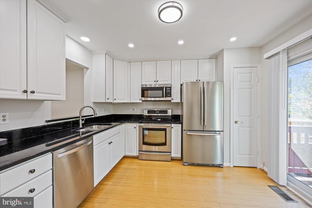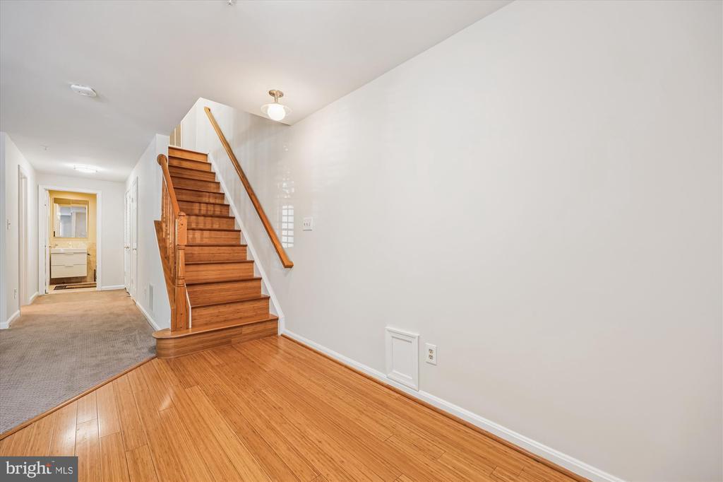 A stunning, ideally located brick front townhouse nestled in the heart of the highly desirable Kentlands community. Optimally located across from the Kentlands Clubhouse and recreation complex and lawns with basketball, pickleball and tennis courts, this immaculately maintained townhouse offers a wonderful melange of style, convenience and comfort. This 4 bedroom 3.5 bathroom townhouse with 2,280 sq. ft. of living space offers appropriate floor coverings for the bedroom levels and hardwood floors at the entrance and main level. The entry affords a spacious sitting/den area with a full-size bedroom/office and full mordern bath. Step upstairs to discover a spacious bright living and dining room featuring a double-sided glass fireplace. The well-appointed, fully-equipped kitchen boasts stainless steel appliances, granite counter tops and pantry storage, perfect for culinary enthusiasts. The kitchen opens onto the deck featuring a motorized, retractable awning perfect for outdoor entertaining, overlooking the well-manicured patio which leads to the two-car carriage house garage. Upstairs, the primary suite has dramatic vaulted ceilings, a spacious ensuite bath with a soaking tub, and a walk-in closet. The upper level offers two additional bedrooms and a full second bathroom. This well-appointed inviting townhouse offers the exceptional opportunity to enjoy this coveted community.