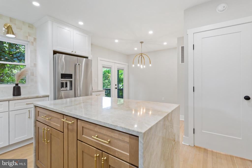 MAJOR PRICE IMPROVEMENT! Don't miss this exceptional value in Highland View! Welcome to 3 Knox Place, a completely renovated 4-bedroom, 3-bath home on a peaceful cul-de-sac near Sligo Creek Parkway. This light-filled residence showcases stunning white oak hardwood floors and an open-concept kitchen with Taj Mahal quartzite countertops, white oak floating shelves, and stainless steel appliances. The main level features two bedrooms, a full bath, and an expansive deck perfect for entertaining. Upstairs, retreat to the luxurious primary suite with a spa-inspired en-suite bath boasting dual vanities, designer lighting, a soaking tub, elegant tile work, and a frameless glass shower. The finished lower level walks out to a private patio and includes a wet bar, full bath, flexible bonus space, and an ideal in-law or au pair suite. Enjoy the spacious fenced backyard with endless possibilities. Everything has been updated - new roof, windows, kitchen, bathrooms, flooring, fixtures, etc. . Move-in ready ! Minutes from downtown Silver Spring, Metro, shopping, and major commuter routes. Priced to sell - schedule your showing today before it's gone!