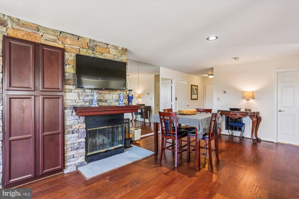 Beautifully updated and ideally located, this Kentlands residence blends beautiful updates with a fantastic floorplan and ultimate convenience. Luxury vinyl plank flooring flows through the open-concept living and dining areas, brightened by recessed lighting and anchored by a striking stacked-stone fireplace and custom built-ins. The generous kitchen features updated cabinetry, appliances, and fixtures - perfect for effortless everyday living and entertaining. The spacious primary suite offers direct access to the patio—ideal for enjoying evening breezes and golden-hour light. This serene retreat is thoughtfully appointed with a walk-in closet, a second double-door closet, and a lighted ceiling fan. The renovated en-suite bath showcases a glass-enclosed tile shower, soaking tub, and designer lighting and fixtures. A generously sized second bedroom with double windows and a double-door closet offers flexibility for guests, a home office, or creative pursuits. The updated hall bath includes ceramic tile, glass shower doors, and decorator finishes. Additional highlights include a coat closet, a dedicated laundry room, and a utility closet with extra space for storage. The best of Kentlands living is right outside your front door —breezy lakefront paths, vibrant cafés, boutique shops, and a true sense of community—all just moments from major commuter routes and urban conveniences.