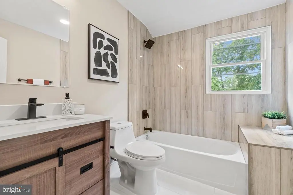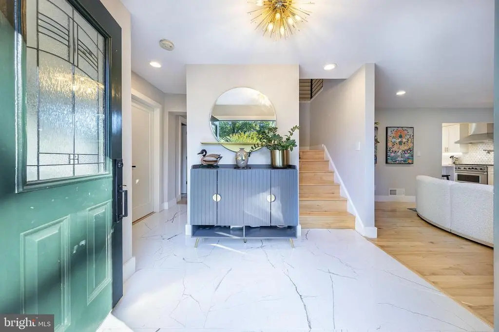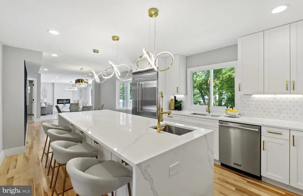 Welcome to 9021 Cherbourg Dr, Potomac, MD A beautifully reimagined Dutch Colonial, fully renovated in 2022, offering 3,770 finished sq ft of refined living space on a 0.34-acre lot in one of Potomac’s most sought-after school districts. Every detail reflects quality craftsmanship and modern elegance while preserving the home’s timeless charm. The main level, filled with natural light, showcases gleaming new flooring, recessed lighting, and designer accent walls that add warmth and sophistication. The layout flows seamlessly between spaces—featuring a formal living room with fireplace, a renovated chef’s kitchen open to the dining area, an office or optional bedroom, and a spacious family room with a second fireplace—perfect for entertaining or relaxed family living. At the heart of the home, the renovated kitchen impresses with Viking appliances, a statement hood, quartz countertops, a jumbo center island, dual sinks, and back-lit shaker cabinetry. Although the photos show a smaller table, the dining area comfortably accommodates seating for ten—ideal for gatherings and holiday meals. A powder room with bidet adds a refined touch. Upstairs, discover four well-appointed bedrooms. The primary suite offers a spa-inspired bath with soaking tub and bidet. A second bedroom includes its own en suite bath, while two additional bedrooms share a beautifully finished third full bath. The fully finished walkout basement provides a bonus bedroom, full bath, and versatile recreation space—ideal for a gym, media room, or guest suite. With new windows, roof, decking, and HVAC, this residence feels truly turn-key—offering the comfort of new construction with the character of a classic Potomac home. Outside, enjoy a serene backyard surrounded by mature trees—perfect for gatherings, play, and peaceful relaxation. Nestled in a prestigious Potomac neighborhood, minutes from Falls Road Golf Course, Cabin John Park, swim and tennis clubs, shopping, and dining, this home offers the perfect blend of luxury, location, and livability—with an easy commute to DC, Bethesda, and Northern Virginia. Schedule your private tour today—this 2022 Potomac gem won’t last!