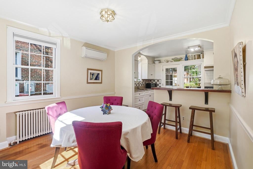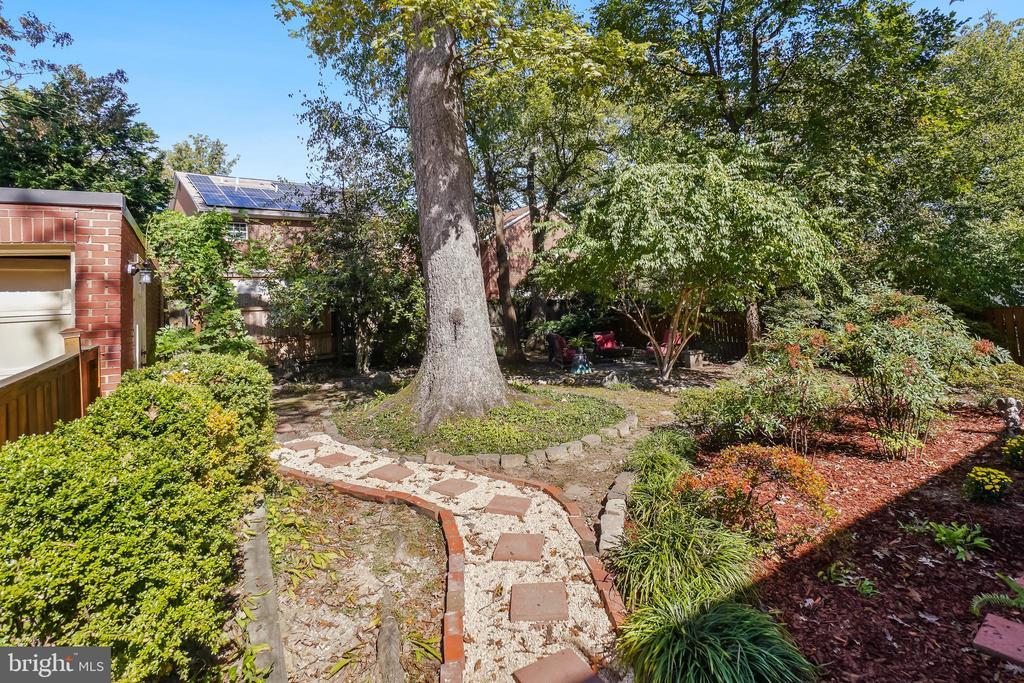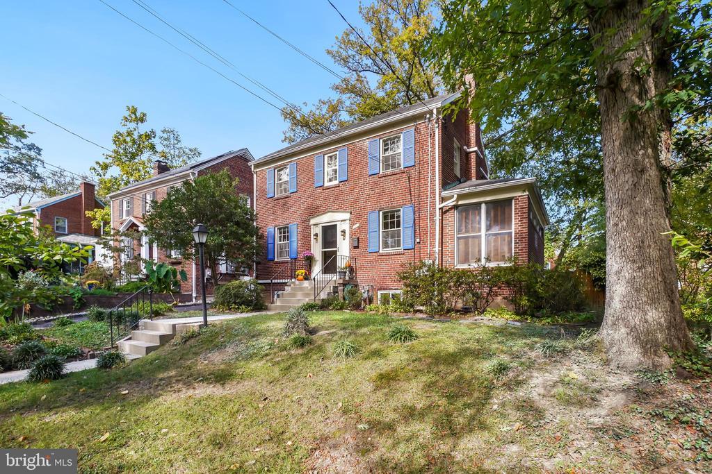 Welcome to 1112 Lancaster Road! This distinguished brick Colonial features thoughtful updates throughout and has a bevy of ‘bonus’ features, including a pleasing patio, extensive landscaping, a garage, and a modern ductless air conditioning system - all ideally located in lush and welcoming Takoma Park, just steps from scenic parks and wooded trails. Built in 1940 with a thoughtful library/office addition, this elegant residence features rich hardwood floors, custom built-ins, recessed lighting, and refined architectural charm throughout. The bright living room offers a classic fireplace with a marble surround, crown molding, and custom wood shelving and cabinetry. Just beyond, a warm and inviting library/office features two walls of bookcases and an exposed brick wall. At the heart of the home, the open, renovated kitchen and dining area seamlessly blend cooking, entertaining, and gathering spaces. The kitchen, thoughtfully remodeled in 2023, features striking granite counters, a tile backsplash, handsome cabinetry with soft-close drawers, a wood-topped breakfast bar, and a stainless-steel appliance suite with a five-burner gas range. The space also offers direct access to the deck, patio, and backyard, extending the living area outdoors. The adjoining dining area is enhanced by graceful archways and chair rail molding, adding to the home’s enduring charm. Upstairs, you’ll find three sun-filled bedrooms with hardwood flooring and deep closets. This level includes a renovated full bathroom with marble-accented niches and a smart mirror. The primary bedroom offers two closets and overhead lighting. A linen closet and a charming window nook at the top of the stairs complete this level. The lower level provides a spacious family room or in-law suite with recessed lighting, newer windows, display shelving, and a large closet. There’s also a full bathroom, a mini kitchenette with built-in sink and pantry, plus a generous storage and laundry area with cabinetry, offering plenty of flexibility and functionality. Outside, the beautifully landscaped lot features mature trees, a fenced backyard with an expansive patio, a serene deck, a cozy firepit area, decorative river rocks, and meandering pathways that create a private outdoor retreat ideal for entertaining or quiet relaxation. A private driveway and detached garage with extra storage add both convenience and value. Practical highlights include a durable slate roof and modern ductless 'mini-split' heat pump system for efficient heating and cooling. Enjoy living in eclectic Takoma Park—where this location captures the very best of the community’s spirit and setting. The neighborhood is known for its summer block parties, Halloween celebrations, potluck dinners, and gardening get-togethers. Here, you’ll enjoy a true sense of community along with easy access to Sligo Creek Park, trails, playgrounds, local shops, restaurants, and downtown Silver Spring. Just a quick ride to the Red Line Metro, this home blends charm, comfort, and convenience in one of Takoma Park’s most beloved enclaves.