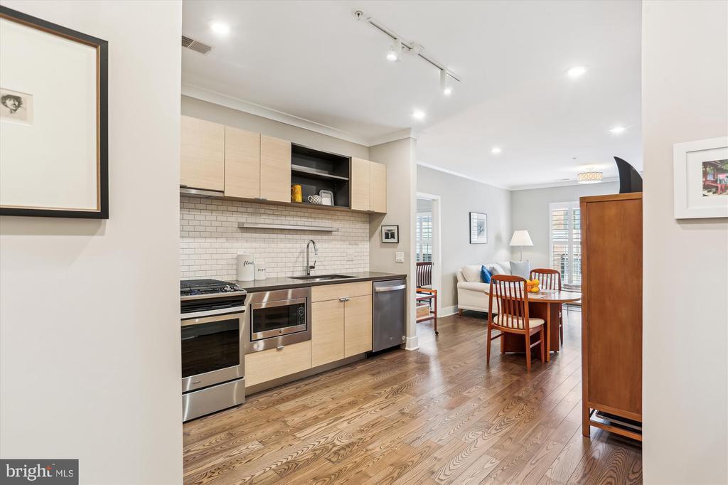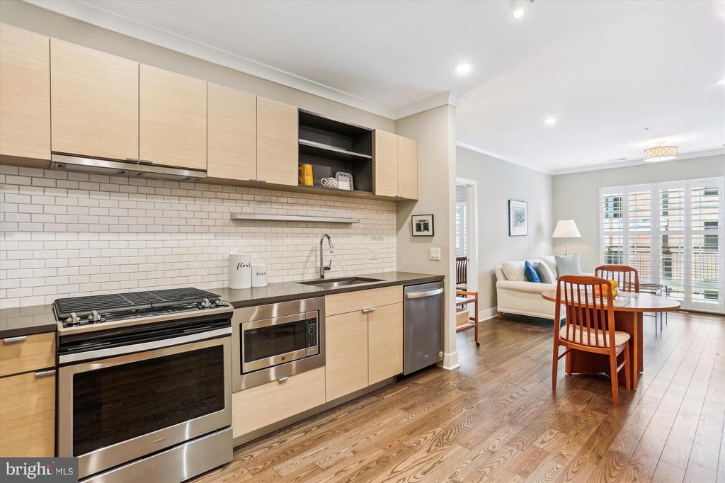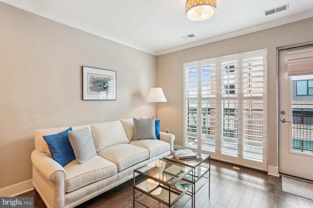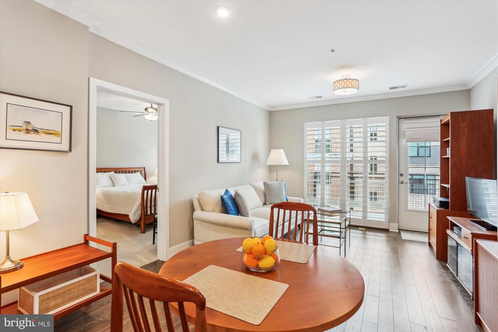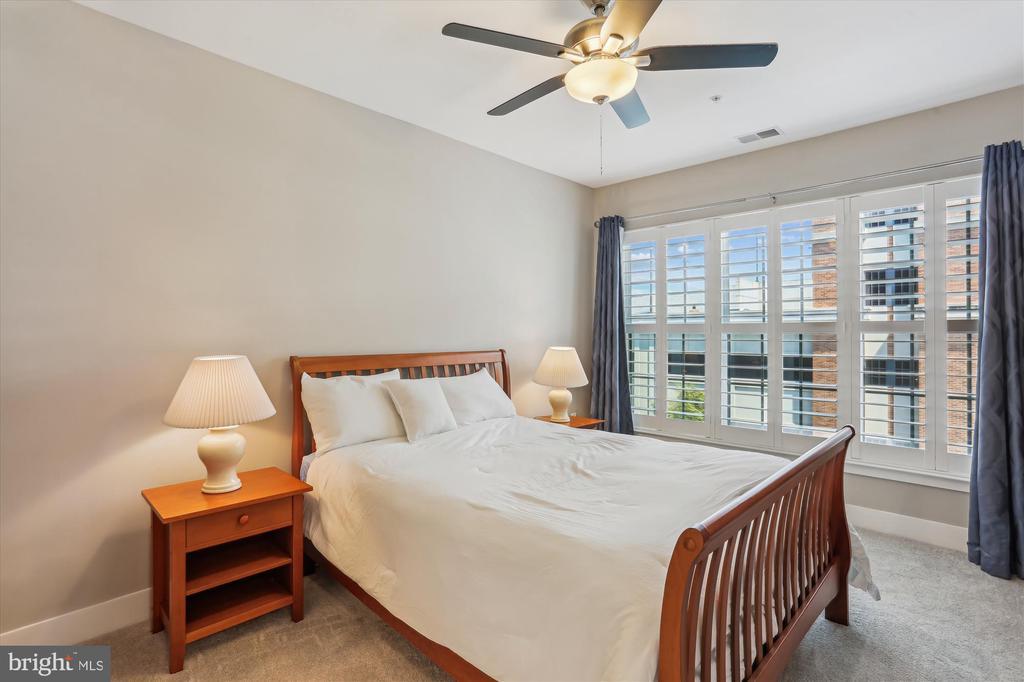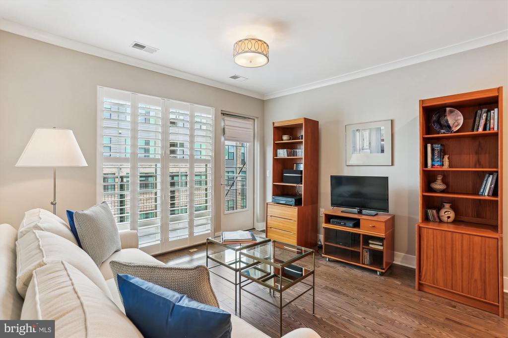 Exceptional value for this luxury 2 bedroom, 2 full bath residence at The Copley at Crown! Better than new, this stylish condo features an open-concept floor plan, private balcony, in-unit washer and dryer, and convenient garage parking. Sleek modern kitchen with stainless steel appliances, soft-close cabinetry, quartz countertops and tiled backsplash. Professionally painted and upgraded throughout with new plush carpeting in both bedrooms, engineered wood flooring in the living area and high end plantation shutters on every window. Primary suite features two closets, one walk-in with custom designed organizer system. Ensuite full bathroom with elongated double sink vanity, walk-in shower with new hand-held shower fixture and laundry closet. Second bedroom offers easy access to spacious second full bathroom with tub/shower combination. Tankless hot water heater and HVAC with new compressor. Clean, meticulously cared for and ready to move in! One garage space conveys in the pet friendly building with amenities that include an inviting building lobby, a pristine trash room on every floor, mailroom, package concierge, and elevator. Free shuttle for residents to the Shady Grove Metro. Two courtyards with fireplace and grilling area. The Crown neighborhood features: Harris Teeter, Starbucks, Lifetime Fitness, Woodhouse Day Spa, over 10 restaurants for dining and many shops throughout. Easy access to I270 and The Rio Lakefront is only a few blocks away. Excellent opportunity for perfection inside and out!