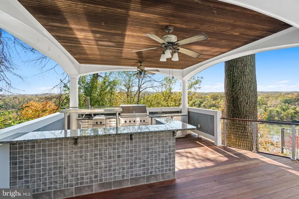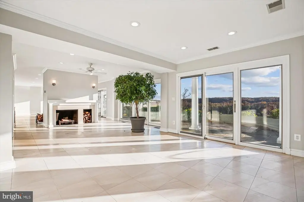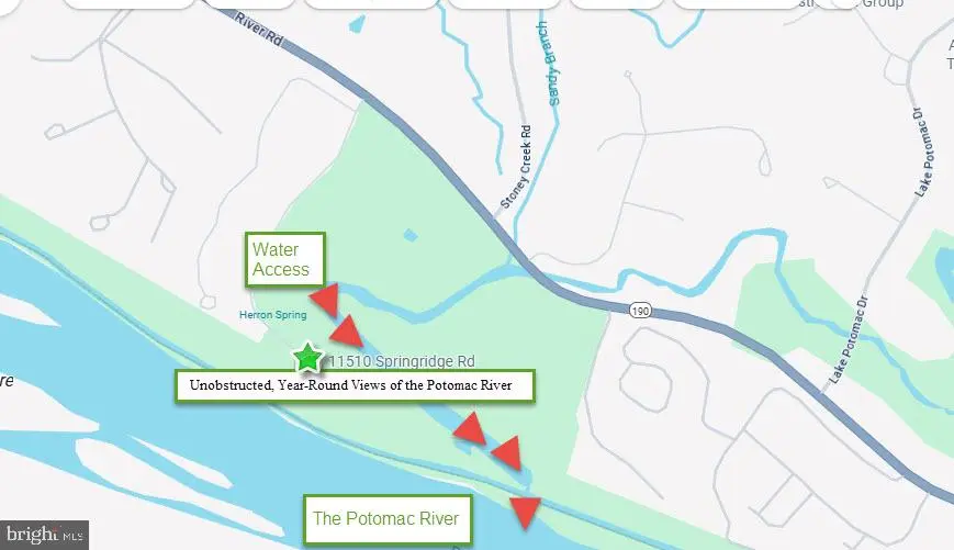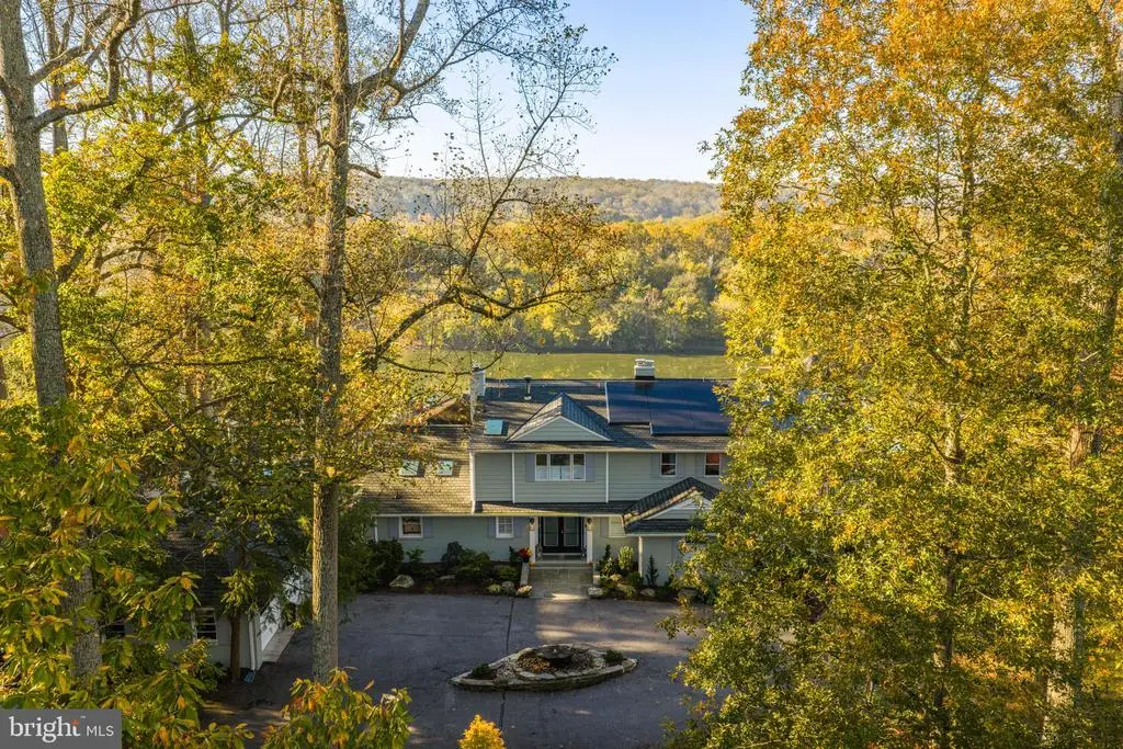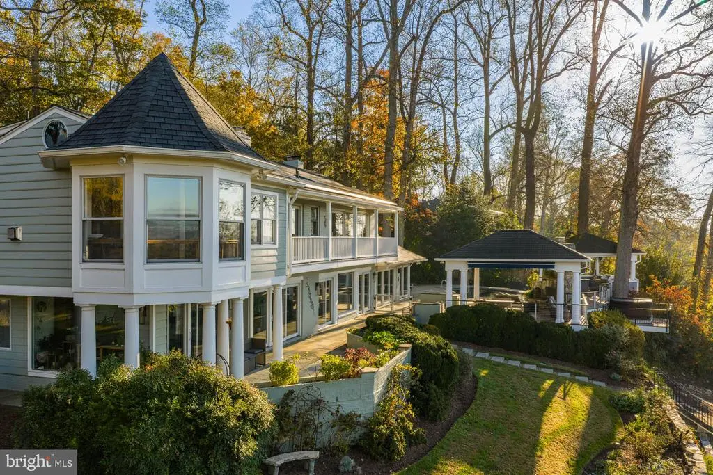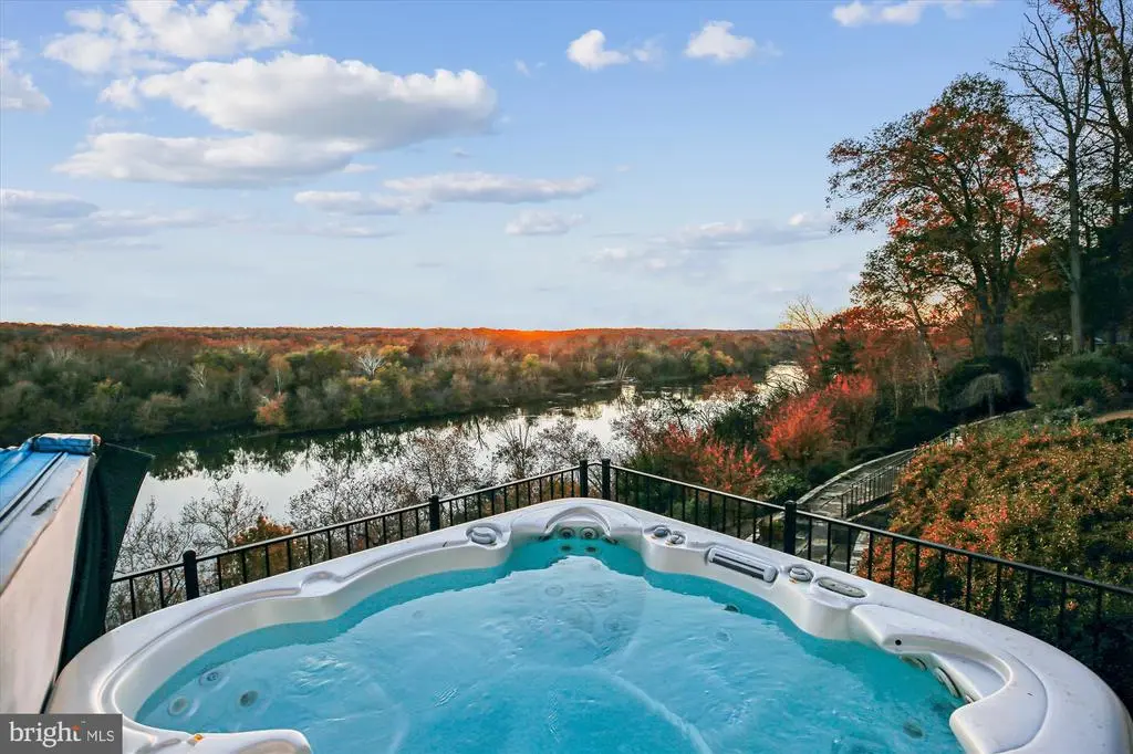Welcome To 11510 Springridge Road, an extraordinary property offering unobstructed, year-round views of the Potomac River—an exceptional find in the Washington, DC area. This nature lover’s paradise is set on over three acres, adjacent on two sides to the bucolic C&O Canal National Historic Park, with 270-degree river frontage and creek access from which you can float your kayak under the canal and out to the Potomac. This remarkable setting provides a rare opportunity for breathtaking panoramas and a natural sanctuary complete with nesting bald eagles and blue herons for neighbors. The four-bedroom residence is gracefully perched atop a gentle knoll, where a circular drive with a water feature inspired by the river frames a broad lawn accented by stonework and mature plantings. From the front entry, the eye is immediately drawn to uninterrupted views of the river. Designed to capture its setting, all principal rooms face the Potomac through expansive floor to ceiling windows. The main level showcases a gourmet kitchen adjoining a gathering room featuring a fireplace and that opens to an extensive outdoor living area including an expansive patio featuring an inground pool and two pergolas. A spacious dining room with built-in glass-front cabinetry and a dual-sided fireplace connects seamlessly to the formal living room, where walls of glass share the warmth of the same hearth. The chef’s kitchen is equipped with double wall ovens, two dishwashers, a Sub-Zero refrigerator and freezer, a Gaggenau cooktop with built-in grill, two skylights, extensive cabinets and multiple pantries, and granite counters. This level also offers an en-suite bedroom, a handicap-accessible full bath, an additional bedroom with hall bath, and a mudroom/laundry with exterior entry and garage access. The upper level hosts two en-suite bedrooms, including the palatial primary suite. This remarkable retreat features a sitting room, a fireplace framed by custom built-ins, and an octagonal turret. It also offers two voluminous walk-in closets, an additional deep closet, recessed lighting, and both front and rear balconies. The spa-like primary bath includes a glass-enclosed shower, soaking tub, oversized vanity, and skylight, with a convenient storage room just beyond. Both bedrooms enjoy the rare luxury of waking up each morning to glorious water views, often accompanied by majestic eagle sightings. The outdoor spaces are equally impressive, with sweeping terraces and patios extending across the home—each capturing captivating views. The pool area is complemented by a completely outfitted outdoor kitchen with Viking appliances, a stone fireplace, and two covered pergolas. A hot tub is perfectly perched at the edge of the hill, offering incredible vistas and star gazing galore. Meandering footpaths weave through the lush grounds, leading to secluded perches alive with flowers, birds, and butterflies. Practical features include a new roof, two propane systems, owner-owned solar panels, a new shed, a potting area, a comprehensive irrigation system, a garage, and a carport. Whether enjoying the views from inside or out, let nature nourish your soul while still being less than ten minutes from Potomac Village’s shops and restaurants, with direct access to River Road and easy reach of Washington, DC’s vibrancy. Just steps from the Potomac River and near Blockhouse Point Conservation Park and trails, this property blends rare natural beauty with unmatched convenience.