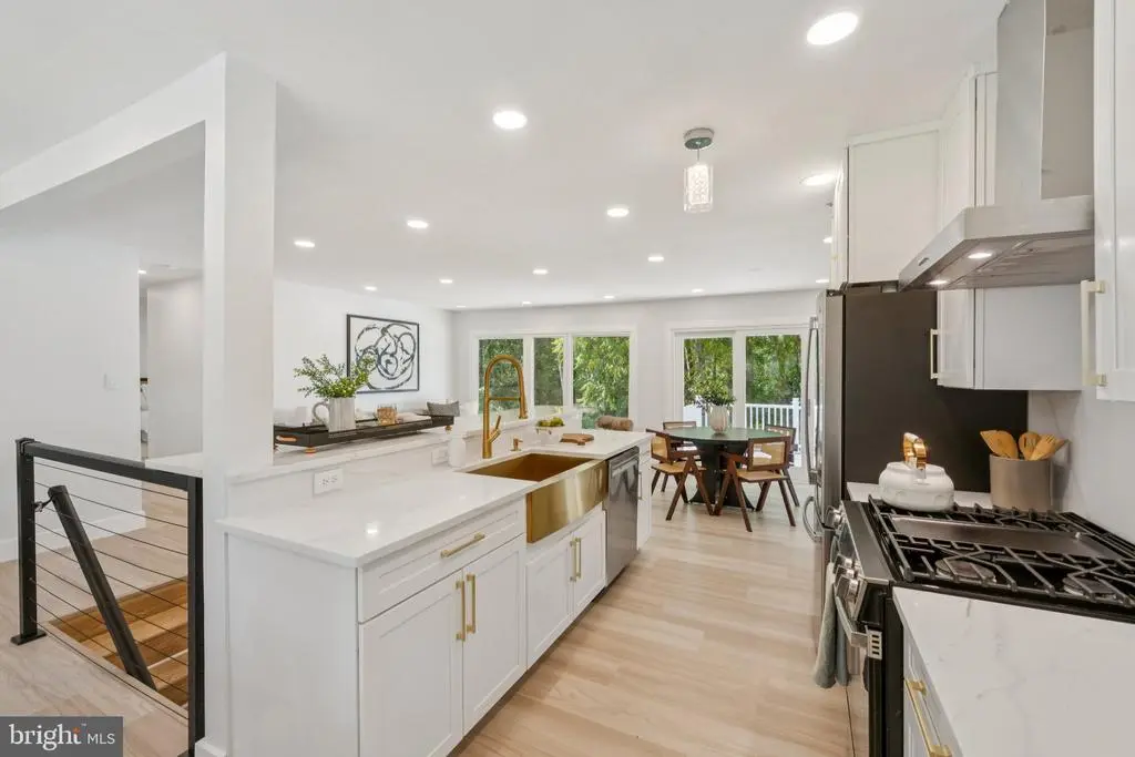 OFFER DEADLINE set for 6pm on Tuesday, October 28th. Welcome to this beautiful and completely remodeled 5 Bedroom, 4 Bathroom Single Family Home located in the highly desirable Rock Creek Manor neighborhood of Rockville! This stunning home has been thoughtfully redesigned from top to bottom, showcasing modern elegance, comfort, and functionality throughout. Step inside to an inviting open floor plan flooded with natural light and enhanced by new luxury flooring and recessed lighting. The heart of the home is the beautifully remodeled open kitchen, featuring high-end finishes, sleek cabinetry, premium countertops, and stainless steel appliances — perfect for cooking, entertaining, and gathering with loved ones. The home offers four stunningly remodeled full bathrooms and a newly built addition laced in windows, creating a bright and airy space ideal for relaxing or hosting. Step outside to the brand-new oversized deck, where you can enjoy peaceful views of the gorgeous, well-maintained backyard that backs to serene woods — the perfect blend of privacy and nature. The fully finished walkout basement is a showstopper, complete with a beautiful kitchenette, two spacious bedrooms, and two full bathrooms, providing an ideal setup for guests, extended family, or additional living space. With fresh paint throughout, modern lighting, and careful attention to every detail, this home truly shines. Conveniently located near restaurants, shops, parks, major highways, and public transportation, it offers the perfect combination of tranquility and accessibility. Every inch of this home has been beautifully updated — all that’s left to do is move in and make it yours!