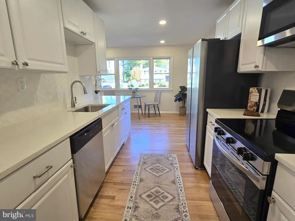 This beautifully updated home, lovingly maintained by its original owners, offers a perfect blend of classic charm and modern style. Freshly painted inside and out, this roomy split-level home features refinished hardwood floors throughout the main and upper levels, along with all-NEW flooring in the lower levels and bathrooms. The brand-NEW kitchen is a showstopper—featuring NEW quartz countertops, stylish backsplash, exceptional cabinetry, stainless steel appliances, modern lighting, space for a breakfast table, and access to the driveway for ease in unloading groceries. Off the dining room you'll step outside to the large, private rear deck, perfect for relaxing or entertaining, plus a convenient storage shed and full house generator. Upstairs, you’ll find four spacious bedrooms - which includes the primary bedroom suite with a full en-suite bath and a huge walk-in closet - two updated full baths, and cedar hall closet. From the main level you'll find your way to the first lower level, offering a fifth bedroom, a cozy family room, an updated powder room (ideal for guests or extended family) and laundry with ample storage closets. Down the stairs to an additional second lower level you'll be delighted by the generous space for a recreation room, more amazing storage, and a den/home office. Located in the sought-after Bel Pre Woods neighborhood, this home offers easy access to nearby parks, country clubs, shopping, and restaurants—providing both comfort and convenience in a peaceful setting.