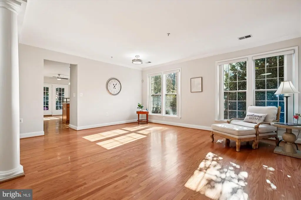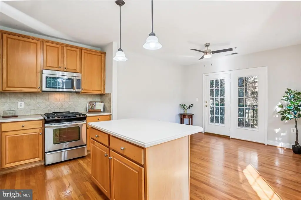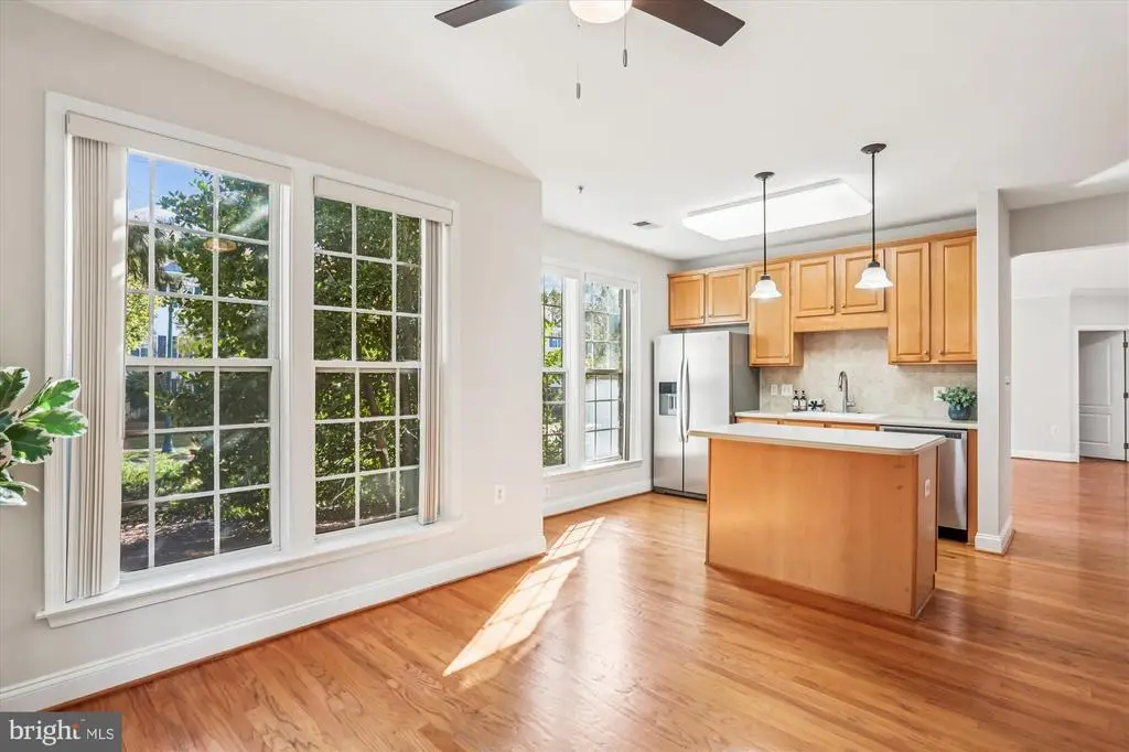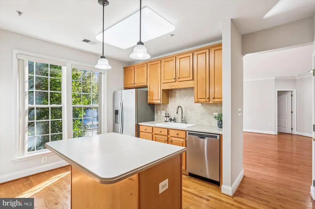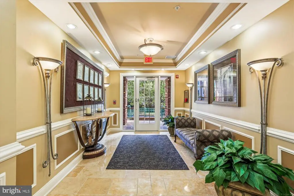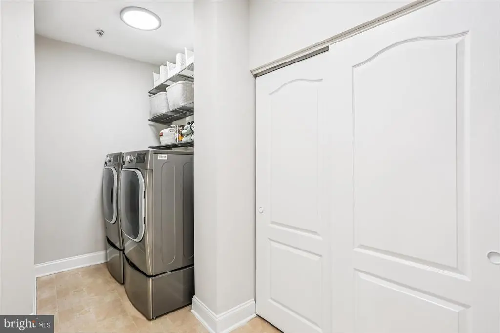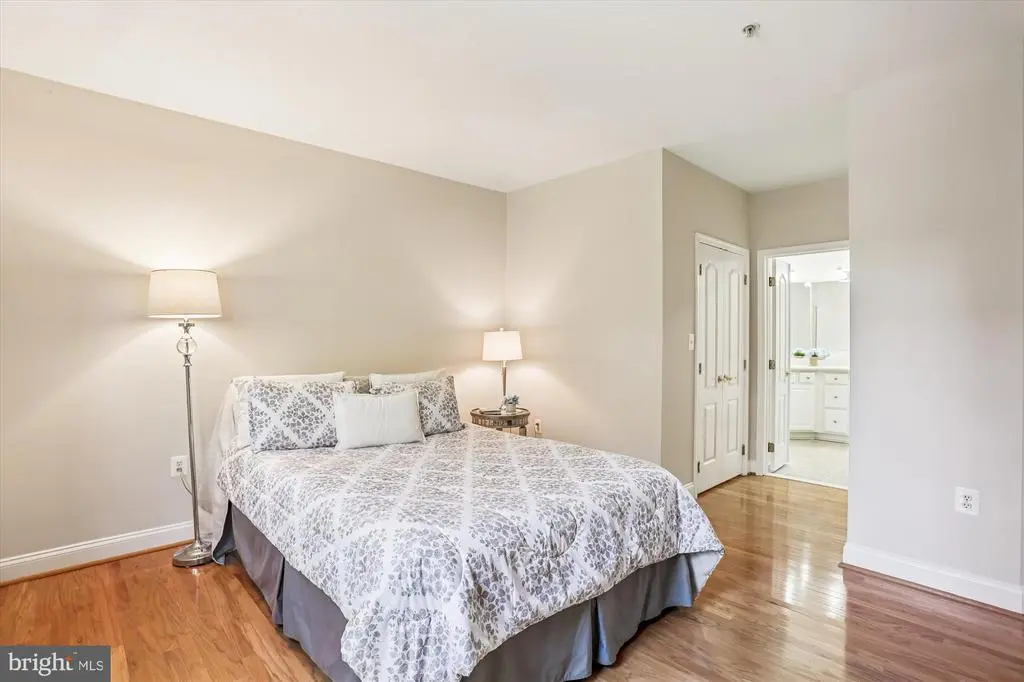 Experience comfort, convenience, and timeless style in this beautifully appointed 2-bedroom, 2-bath condominium located in the sought-after King Farm community. A welcoming foyer with a large storage closet introduces the home’s open, single-level layout. This desirable first-floor model features high ceilings and a rarely available private patio, creating a bright, airy atmosphere ideal for both everyday living and effortless entertaining. Inside, the spacious floor plan is enhanced by gleaming wood floors, fresh paint, and stylish updated lighting. The spacious kitchen offers stainless steel appliances, generous cabinet space, and a pantry, while a nearby large laundry room with modern front-loading washer and dryer provides additional storage and day-to-day practicality. The serene primary suite features two walk-in closets with custom organizers and a private ensuite bath with separate shower and soaking tub. A second bedroom—positioned on the opposite side of the home for optimal privacy—makes a perfect guest room or home office, with a full bath conveniently nearby. Additional highlights include assigned parking, ample guest parking, and direct outdoor access to the patio. Ideally situated near shops, restaurants, and major commuter routes, this move-in ready residence offers modern comfort in an unbeatable location. Residents of King Farm enjoy exceptional amenities, including community pools, parks, tennis and pickleball courts, ball fields, dog parks, walking paths, community center and events, plus a neighborhood shuttle to Shady Grove Metro.