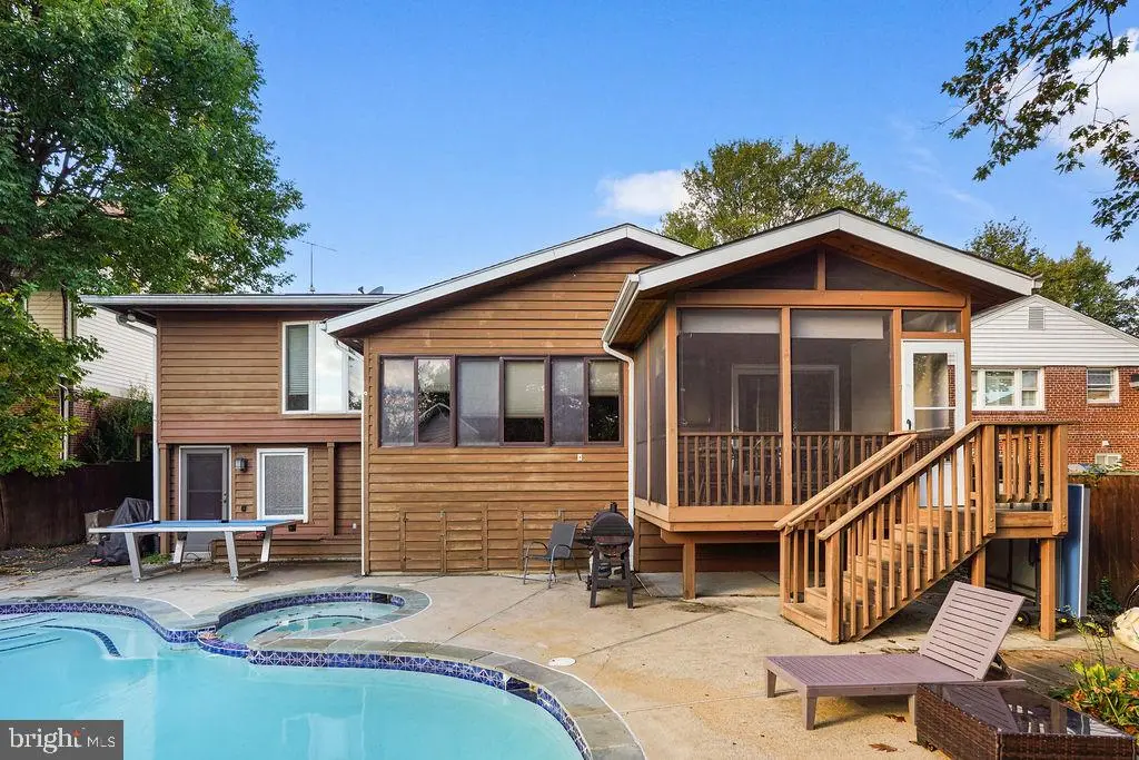Welcome home to 5110 Flanders Ave! This is a fantastic split level home with 4 bedrooms, 2.5 bathrooms and 2,744 square feet and it has been beautifully maintained and updated throughout. The stunning primary suite is massive, offering a large sitting area, ample closet space, and the new hardwood floors that gleam in an abundance of natural light from the skylight. The large kitchen has two skylights, generous cabinetry, and expansive counter space, making it perfect for cooking and entertaining. The main living space and dining room with built-in cabinetry, are seamlessly connected to the kitchen, offering the perfect space for relaxing and dining. The at-grade lower level has been fully updated and can be used as a fourth bedroom, office, or home gym. The sunroom would make for the perfect home office or studio, and it overlooks the gorgeous backyard and pool. The backyard features a hardscaped pool with hot tub, and a recently installed gas heater. There is also a screened in porch and gazebo, allowing maximum enjoyment of the outdoor space. Other features include solar panels, and an EV charging station that will save you on both gas and electric. Located minutes from the Strathmore, endless retail options on Rockville Pike, and just 5 minutes to Pike and Rose and both the Grosvenor and North Bethesda Metro stop. Rock Creek Park is also nearby, perfect for commuting or a weekend bike ride and hike. Hurry up and book a tour, this opportunity will not last! .