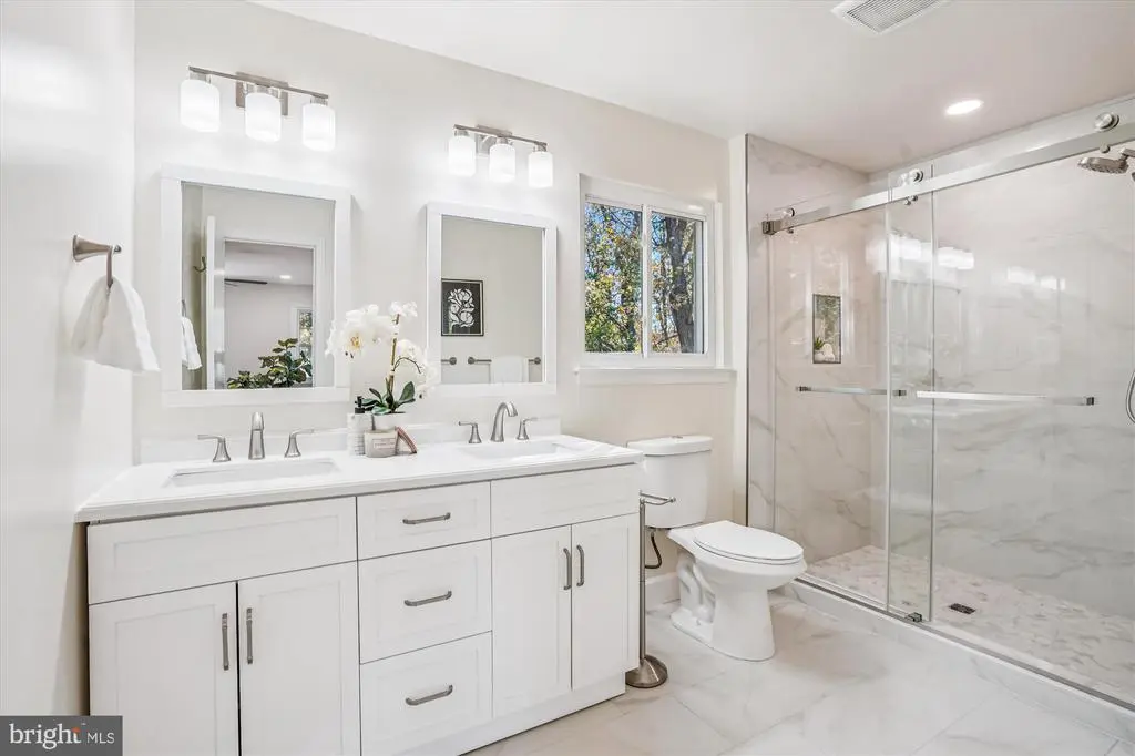 OPEN SUNDAY 11/16, 1-3PM! A BEAUTIFUL CUL-DE-SAC GEM IN BEDFORDSHIRE! Meticulously renovated from top to bottom, this exceptional 4BR, 3.5BA home is tucked away on a quiet cul-de-sac in the desirable Bedfordshire community of Potomac. The exterior showcases timeless curb appeal with a handsome stone-brick facade on the first level, while the rear of the home backs to a tranquil stream and features a bright and above-grade walk-out lower level. With stunning 2025 updates, this residence stands out with a brand new primary bathroom, brand-new stainless steel appliancesa, freshly repaved driveway and front step, newer roof, replaced front windows, a brand-new HVAC system, new hot water heater, updated electrical panel, new carpets upstairs, new luxury vinyl plank flooring on the lower level, new fence, fresh paint throughout, and stylish recessed lighting. The main level features beautiful hardwood floors and a charming wood-burning fireplace, creating a warm and inviting atmosphere. Sun-filled living and dining rooms flow seamlessly into the family room and kitchen—perfect for both everyday living and entertaining. A convenient powder room and a back hallway leading to the two-car garage. Upstairs, enjoy thoughtful updates throughout, including plush new carpeting, recessed lighting, and beautifully renovated bathrooms. The spacious primary suite features a walk-in closet, ceiling fan, and a spa-inspired bath with double vanity, custom-tiled walk-in shower, and modern finishes. Three additional bedrooms offer ample closet space and share a updated hall bath with a nearby linen closet for added storage. The sun-drenched, walk-out lower level opens to a private backyard that backs to tranquil woods and a peaceful stream, offering a perfect balance of privacy and natural beauty. This level also includes new LVP flooring, a large recreation room, kitchenette, full bath, laundry room, and a versatile bonus room ideal for a gym or office. Just minutes from the Potomac Community Center, Potomac Village, Cabin John shopping center, Park Potomac, as well as I-270 and major public transportation, 10132 Colebrook Avenue combines modern luxury and timeless charm—all in a beautifully refreshed, move-in-ready home!