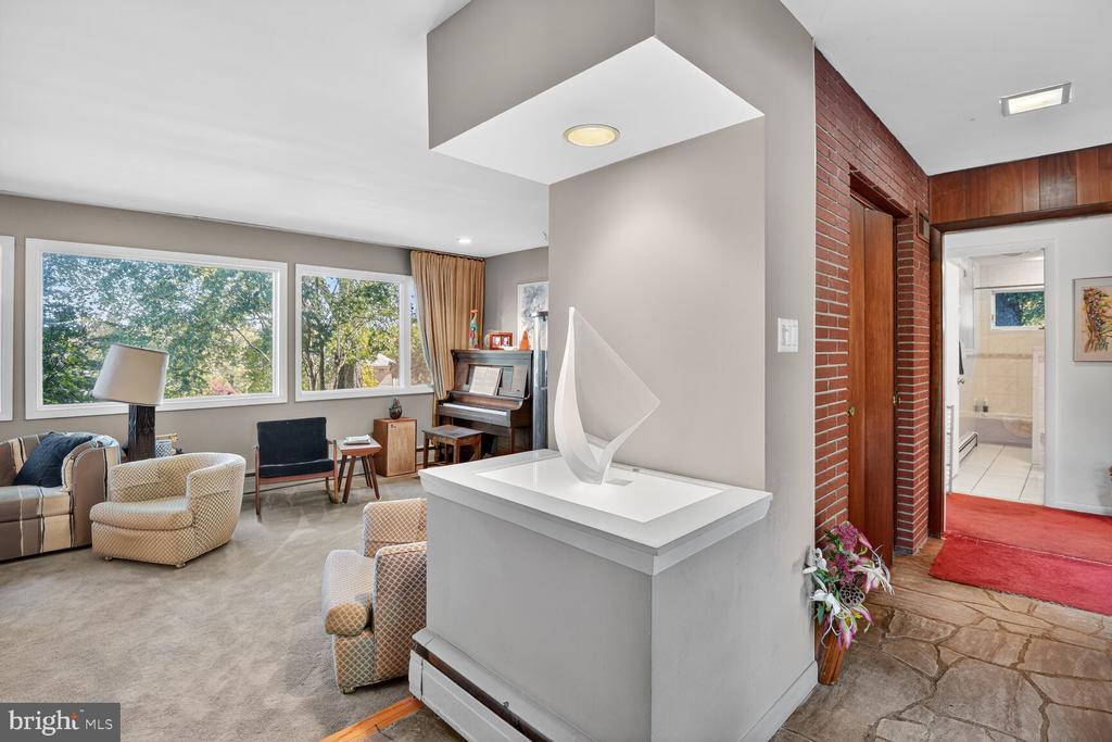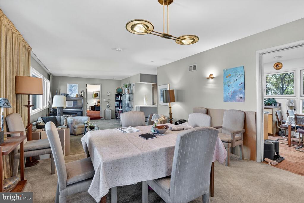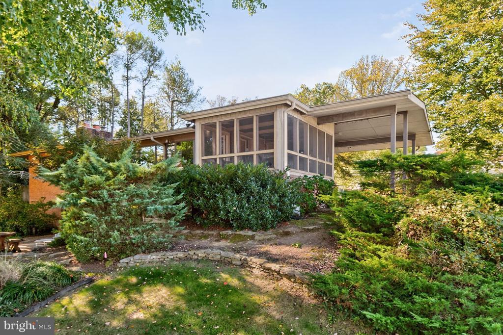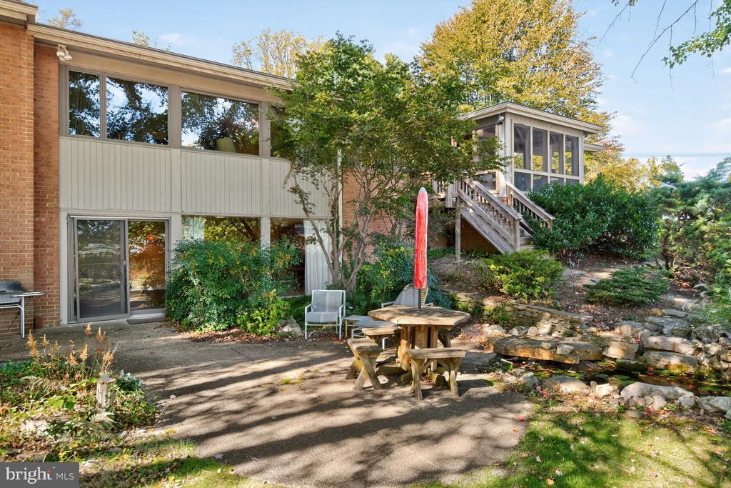 Price Reduction! It is a pleasure to present this bright, spacious four-bedroom, three full bath Contemporary located in the desirable Dunlop Hills subdivision of the leafy Rollingwood neighborhood in Chevy Chase, Maryland. This comfortable oasis of tranquility is situated on a acre lot on quiet streets. A flagstone walkway bordered by a landscaped yard with a beautiful Japanese Maple tree welcomes you to this classic Mid Century Modern home. The entry foyer gives a panoramic view to the spacious living room/dining room, the kitchen to the left and the hallway to the bedroom wing to the right. The Combination living room/dining room has a wall of picture windows and recessed lighting bathing the interior with light. The dining area accesses a spacious screened porch perfect for Al Fresco dining. A skylight and numerous windows brings light into the well designed table spaced kitchen featuring a unique artist designed backsplash and ample cabinetry. The kitchen boasts upgraded countertops, luxury vinyl tile flooring, a gas cooktop, side by side refrigerator, dishwasher, and a door to the carport allowing retrieving the groceries in with ease. The large primary bedroom with recessed lighting and a wall of closets has been expanded by an addition that leads to a private owner’s patio perfect for morning coffee. The primary bathroom has a jetted tub, separate shower, a skylight, and high windows that provide plenty of light while maintaining privacy. The hall features a linen closet and a full bath. There is an additional bedroom on the main floor with a double closet and large windows and a spacious den/library/office with bookcases and a fireplace. The lower level has a huge open family room with bookcases, a fireplace, a wet bar, an exposed brick wall and a walkout level door to a patio. The patio has a beautifully landscaped garden with a pond with waterfall great for outdoor entertaining. The lower level also has two additional bedrooms, a storage /utility room, a large laundry room and a full bath. Terrific location – convenient to shopping, dining, Rock Creek Park and buses to three Metro stations. The Rollingwood neighborhood has an active Citizen’s Association with frequent social activities like block Parties, picnics, happy hours and movie nights making this the ideal place to settle down.