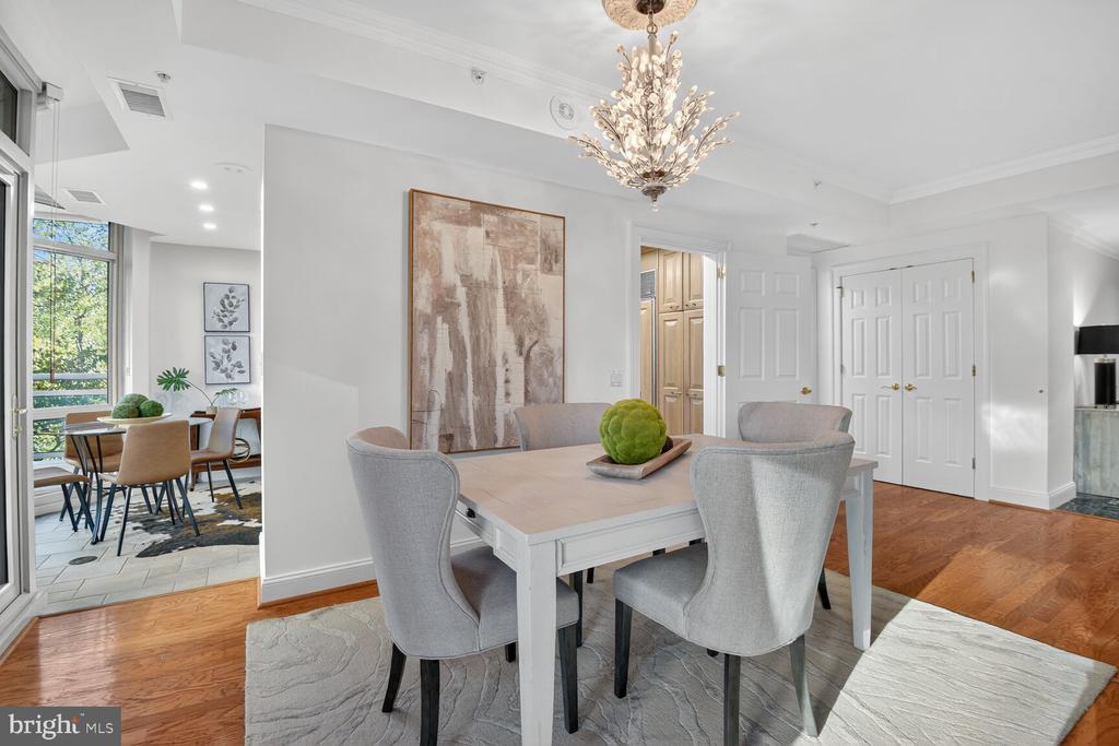 Luxury Living at Its Finest – The Parc at Somerset is one of the most exclusive addresses in the DMV. This exquisite 2-bedroom + DEN residence offers 1,815 sq. ft. of elegantly appointed living space, combining sophistication and comfort. Step into a modern green marble foyer and hardwood floors that lead to a generous living room with it's tree lined view terrace that wraps the living, dining and kitchen. The living area flows seamlessly into a formal dining room adorned with a crystal chandelier and perfect for entertaining. The gourmet kitchen features full windows surrounding the eat-in dining area with terrace access, custom cabinetry, granite countertops, and professional-grade appliances. The luxurious owner’s suite offers a cozy entry hall, spa-like bath with a walk-in glass shower, soaking tub, dressing area, and a generous walk-in closet. Adjacent to the owner’s wing is a spacious den ideal for a library or home office, a generous second bedroom, shared full bath, and a walk-in laundry room with storage and a second sink. Residents enjoy resort-style amenities including: The Parc's inviting circular drive has front valet, two-story elegant lobby, side sitting room for guests, community room, 24-hour front desk and gorgeous halls. Somerset Spa & Sports Club's resort amenities include heated indoor lap pool, outdoor pool with sundeck, whirlpool spa, saunas, tennis courts, racquetball and squash facilities, state-of-the-art fitness center, art and yoga studio. Elegant lounges, card and billiard rooms, and a refined residents’ club room for entertaining and social gatherings. Security and service are paramount, with a 24-hour staffed gatehouse dand full-time on-site management, ensuring peace of mind and effortless living. The landscaped grounds with mature trees, walking paths leaving a tranquil retreat just minutes from the vibrant energy of Friendship Heights. Blocks from the Friendship Heights Metro, fine dining, shopping boutiques, and so much more.