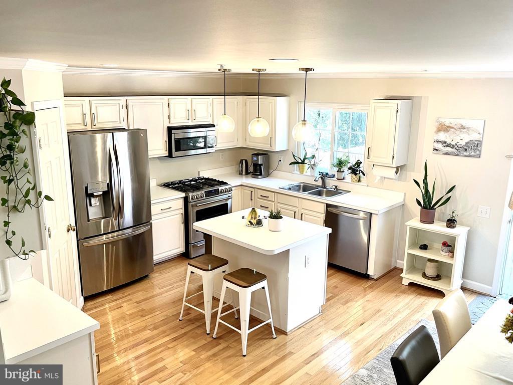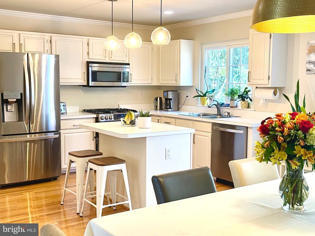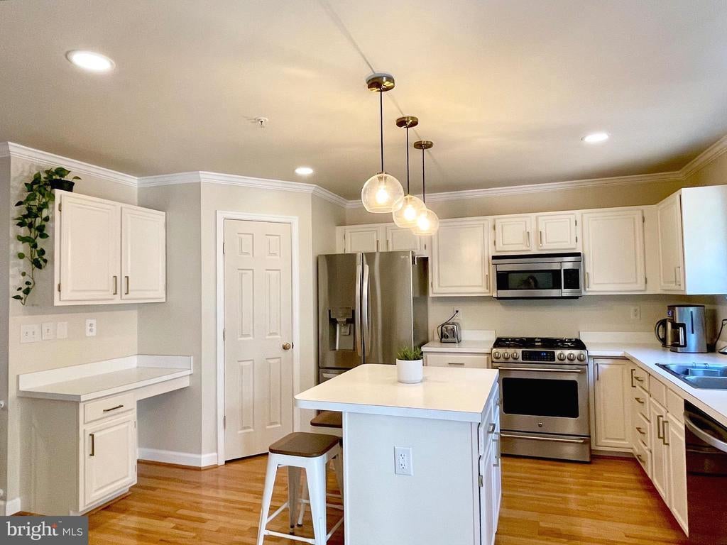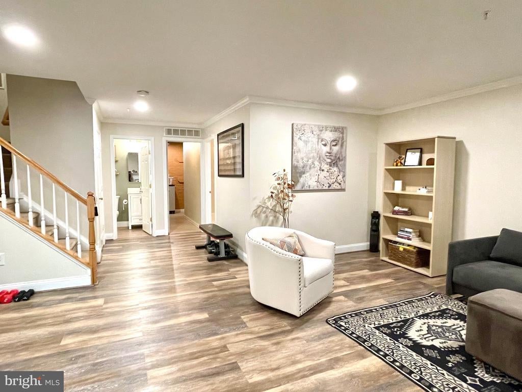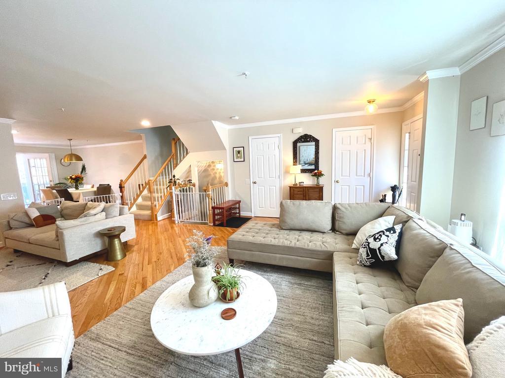 Welcome to this absolutely gorgeous move in ready home in desirable Cloppers's Mill West, this community is close proximity to shopping, restaurants and recreational areas. This immaculate townhouse offers style, convenience, space, open floor, gleaming Harwood floors, recent renovated bathrooms, has been freshly painted throughout and as added peace of mind the roof and HVAC has been recently replaced. The entry level offers a spacious living room with a large window that fills the home with natural light and warmth, great for entertainment. At the back of the home is the ample kitchen featuring a center island, Stainless Steele appliances, a desk, pantry and the adjoining dining area with French doors to a two tier deck backing to a wooded area. Upstairs you will find two large bedrooms, a linen closet and an a bathroom in addition to the commodious primary suite with cathedral ceiling, custom closet and the luxurious bath with dual vanities, a soaking tub and oversized shower. The fully finished lower level is expansive, includes a bonus room, updated bathroom as well, laundry room and a light filled family room with a fireplace and French doors to easily access the lower deck on the fully fenced back yard....Plenty of visitors parking and 2 reserved parking spots for the homeowner...........This fabulous home will not disappoint you.