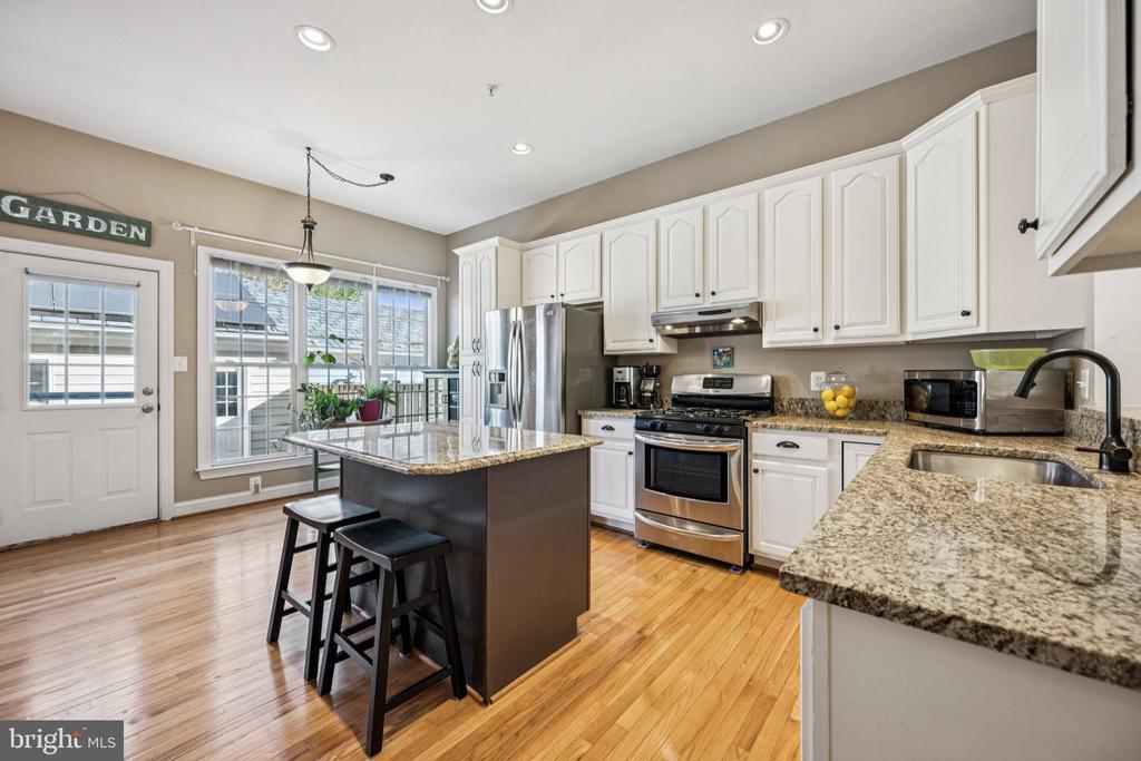 OPEN House, Saturday 1-3pm. Welcome to 328 Inspiration Lane — a well maintained brick-front Parkwood townhome nestled in the vibrant heart of Kentlands’ Mid-Town District. Featuring a newer roof, fully owned solar panels, renovated bathrooms, and thoughtful upgrades throughout, this home is the perfect blend of charm and modern convenience. Step inside from the inviting covered front porch to the main level, where you'll be greeted by soaring 10-foot ceilings, rich hardwood floors, graceful archways, and elegant custom moldings. The entryway opens into a spacious living room and leads you to the separate dining room—perfect for both comfortable everyday living and formal entertaining. The spacious, updated kitchen features stainless steel appliances, crisp white cabinetry, granite countertops, a central island, built-in desk, and a cozy breakfast nook, along with a convenient half bath. Step outside to a private, fenced patio that extends your living and entertaining space. From the patio, you’ll find access to the detached two-car garage, which is pre-wired for an electric vehicle charger. Upstairs, the expansive primary suite features vaulted ceilings with a ceiling fan, two generous closets, and a beautifully renovated spa-like bath with an air-jetted soaking tub, separate shower, and dual vanities. Two additional bedrooms, an updated full hall bath, and a full laundry room complete the upper level. The fully finished lower level offers versatile living space, including a large recreation room with a cozy gas fireplace, a full bathroom, a flexible den or media room, and ample storage. Enjoy the unbeatable location—just moments from shops, restaurants, the weekend farmers market, movie theater, lakes, trails, playgrounds, and all the amenities of this vibrant pool and tennis community. Come experience why so many love calling Kentlands and Lakelands home!
