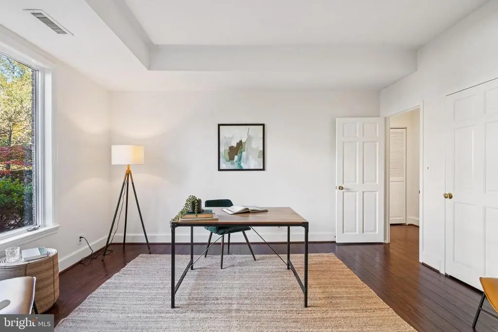 Natural light, park like courtyard views, and an exceptional layout define this spacious three bedroom condo in the South Building of 8101 Connecticut Avenue. Overlooking the community’s private, landscaped courtyard, accessible exclusively from within the complex, this 1,763 square foot residence offers seamless single level living with gracious proportions and refined finishes. The welcoming foyer opens into a large, light filled living room with sliding doors to your private patio, perfect for coffee, a good book, or quiet conversation under the trees. Hardwood floors run throughout the home, connecting multiple zones for relaxing, entertaining, or working from home. The dedicated dining area is beautifully sized for dinner parties or everyday meals. The kitchen is equally functional and inviting, with new stainless steel appliances, quartz countertops, and abundant cabinet space to make cooking and hosting a pleasure. The bedrooms include a spacious primary suite with a large walk in closet and a private bath featuring a separate vanity area. One of the additional bedrooms is fitted with custom built ins and receives beautiful morning light, ideal for use as an office or guest room. The third bedroom features a walk in closet and uses the nearby full hall bath, offering a comfortable and private space for family or guests. Additional highlights include a separate laundry and utility room with washer and dryer, two garage parking spaces, and two private storage units, including one conveniently located just down the hall from your front door. 8101 Connecticut is a full service, pet friendly building with a front desk concierge, beautifully landscaped grounds with water features, multiple seating areas, and ample guest parking. Just down the street, Chevy Chase Lake offers a growing mix of shops, restaurants, groceries, and cafés, including Starbucks. Nearby favorites include Amazon Fresh, Maman, Don Khao, Elena James, UnCorked wine bar, Sara’s Ice Cream, Molly’s Pet Services, StretchLab, and RTR Pilates. The Montgomery County Library is next door, and Rock Creek Park trails, bike paths, and major commuter routes including the Capital Beltway are close by. Experience the ease of single level living in one of the largest floor plans at 8101 Connecticut Avenue, with park like courtyard views, generous space, and a location that balances serenity and convenience. Chevy Chase Lake is just down the street, offering shops, restaurants, groceries, and cafés, while downtown Bethesda and Friendship Heights are also only a few minutes away. Welcome home.