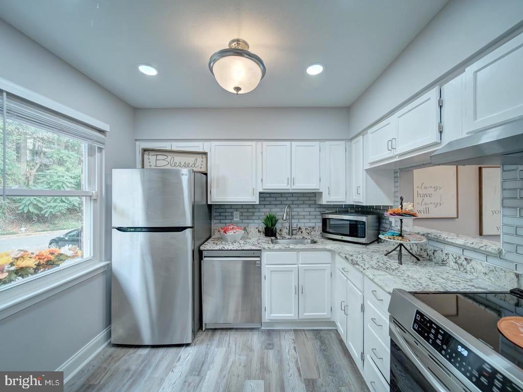Nicely updated townhouse with lake views, kitchen with Granite tops, stainless steel appliances, recess lights, custom back splash, open floor plan with luxurious vinyl floors on all three levels, freshly painted, living room has a cozy wood burning fire place, nice size deck which opens up to a huge field which becomes a winter delight when it snows with beautiful lake views, updated bathrooms with marble vanities basement has a rough in for another bathroom, brand new washer and dryer. Plenty of parking, Minutes away from 270 and shopping centers.