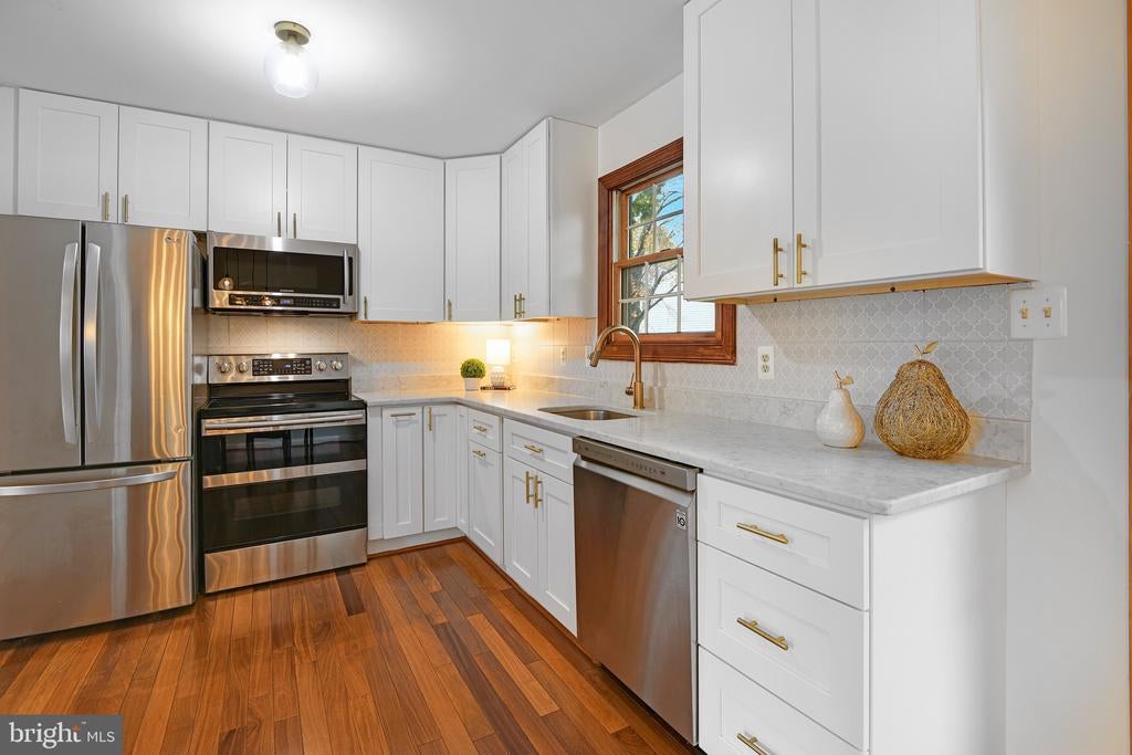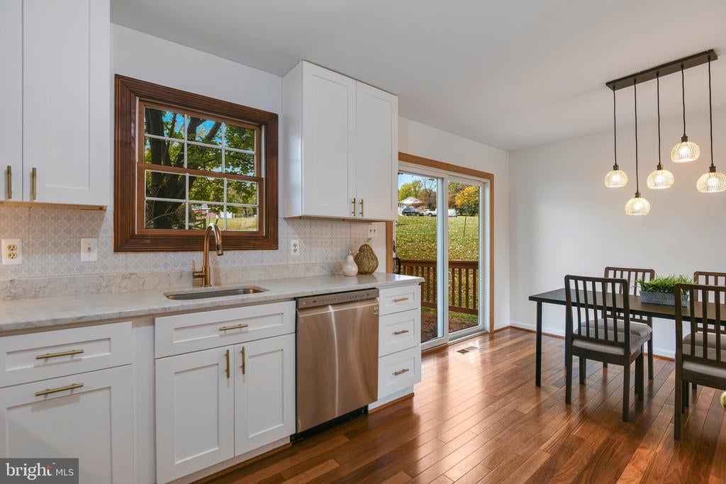 Welcome to 24200 Welsh Road, nestled in the idyllic community of The Plantations, surrounded by mature trees and open green space. This beautifully maintained 3-bedroom, 2.5-bath split-level home has been thoughtfully updated by the current owner and is completely turn-key. The main level features a spacious living and dining area with Brazilian teak flooring that flows seamlessly into the remodeled kitchen (2018), showcasing white shaker cabinets, quartz countertops, stainless steel appliances, and modern finishes. Upstairs, you’ll find the generous primary suite with a stylishly renovated full bath featuring a Roman shower and contemporary design elements. Two additional bedrooms and a second full bath complete the upper level. The light-filled lower level offers a comfortable recreation room with luxury vinyl flooring, a half bath, laundry area, and walk-out access to the backyard. Step outside to enjoy the deck and concrete patio—perfect for outdoor entertaining or dining al fresco. Additional updates include a new roof (2024) and gutter guards (2019). Conveniently located with easy access to Washington, D.C. and Baltimore, and within the boundaries of a top rated elementary school.