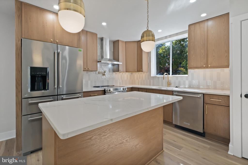 Timeless elegance meets modern comfort in this beautifully renovated 5BR, 2.5BA colonial in the heart of Takoma Park! Step inside to gleaming luxury vinyl flooring throughout three levels and an open-concept layout perfect for entertaining. The stunning kitchen features elegant quartz countertops, timeless oak cabinetry, stainless steel appliances, and abundant natural light. The main level flows seamlessly with formal living and dining rooms, plus two sliders leading to your private backyard oasis—ideal for outdoor entertaining. Upstairs, the spacious primary suite. The upper level features a spa-inspired bath with modern finishes and a walk-in shower, plus two additional bedrooms. The finished walkout basement includes two bedrooms, a full bath, and a second kitchen; it's perfect as an in-law suite with its own exterior entrance. Completely updated: new roof, windows, doors, kitchen, bathrooms, fixtures, appliances, and driveway. Perfectly located near shopping, dining, and major commuter routes to Washington, DC, minutes from Takoma Park shops. This home offers the ideal blend of charm, convenience, and modern living. Welcome home!