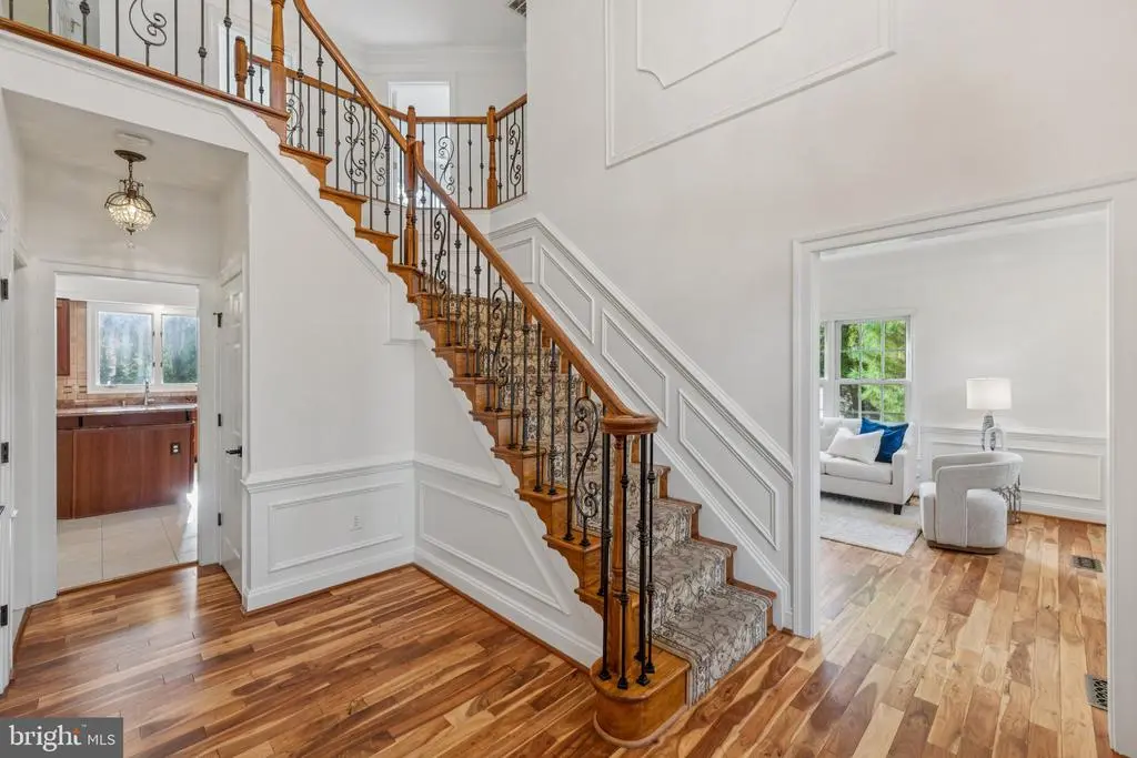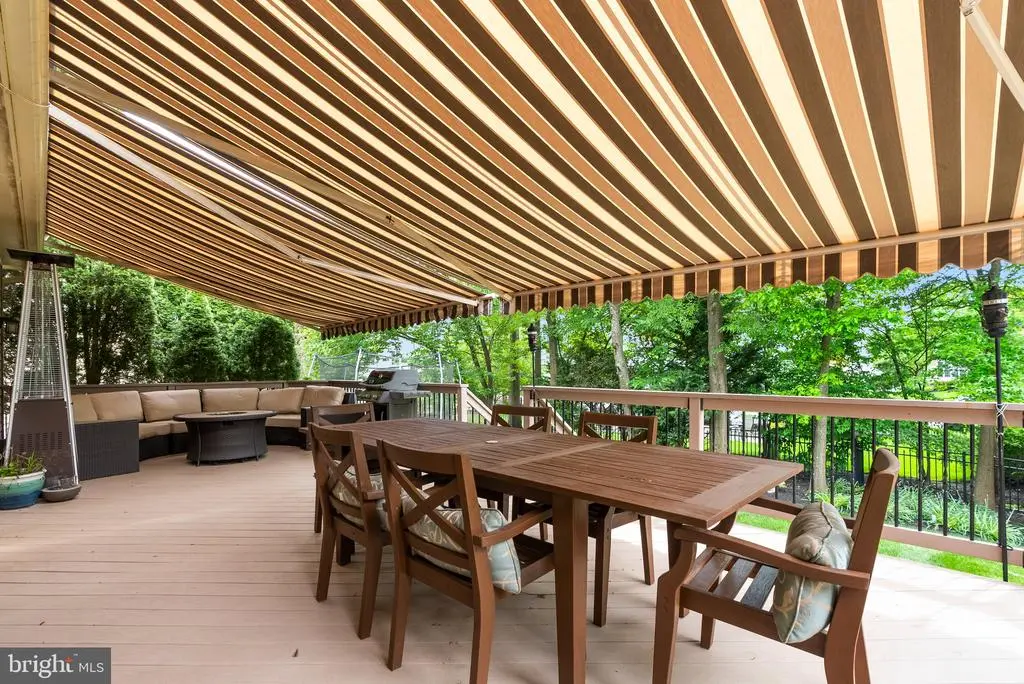 *MATTERPORT COMING!!! Tucked away on a quiet cul-de sac on a picturesque private lot with expansive deck, custom awning and framed by mature trees. A dramatic Sun-filled 2-story entrance Foyer with designer chandelier, crown moulding , rod- iron staircase welcomes guests into the home. The gourmet kitchen features LG stainless steel appliances, including a refrigerator/freezer with automatic water and ice dispenser, oven, ThinQ microwave, and dishwasher, plus a KitchenAid four-burner gas cooktop. Granite countertops, tumbled marble backsplash, ceramic tile flooring, and undermount stainless sink with an automatic soap dispenser complete the space. A sunlit breakfast room with a designer chandelier opens to a custom deck and private backyard. The adjoining family room offers a warm, inviting retreat with a gas-burning fireplace, recessed lighting, crown molding, and hardwood floor The main-level library with custom built-ins provides a sophisticated workspace and the formal living and dining rooms offer superb entertaining space. Upstairs, the primary suite serves as a private sanctuary with a sitting room, dual walk-in closets, and a spa-inspired bath featuring custom stone flooring, a dual-head shower, and elegant finishes. The finished lower level adds versatility with a fully finished recreation room/media room, with private stairs to the rear yard, second home office/guest room, storage and gym. A true standout in one of Rockville’s most sought-after communities—offering luxury, comfort, and convenience close to top schools, shopping, dining, and commuter routes.