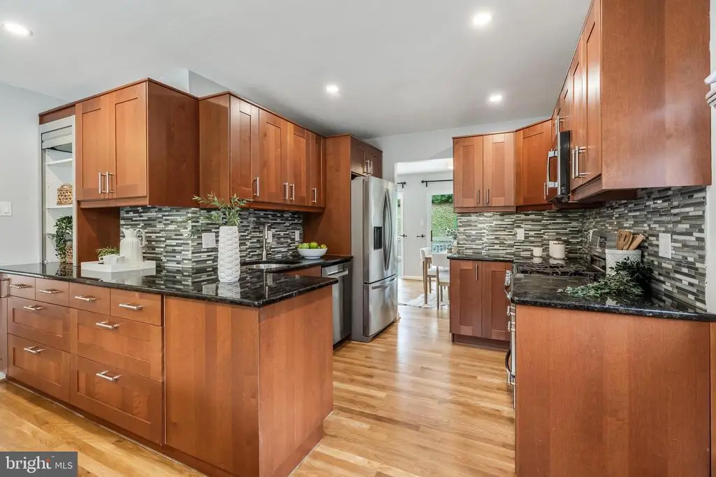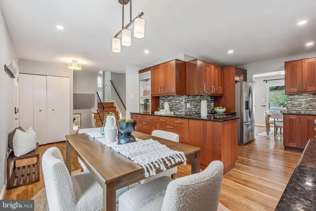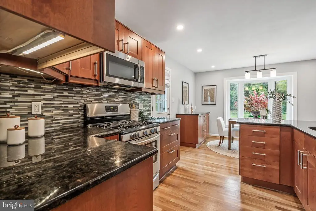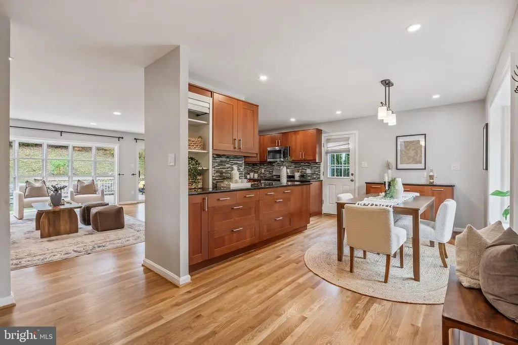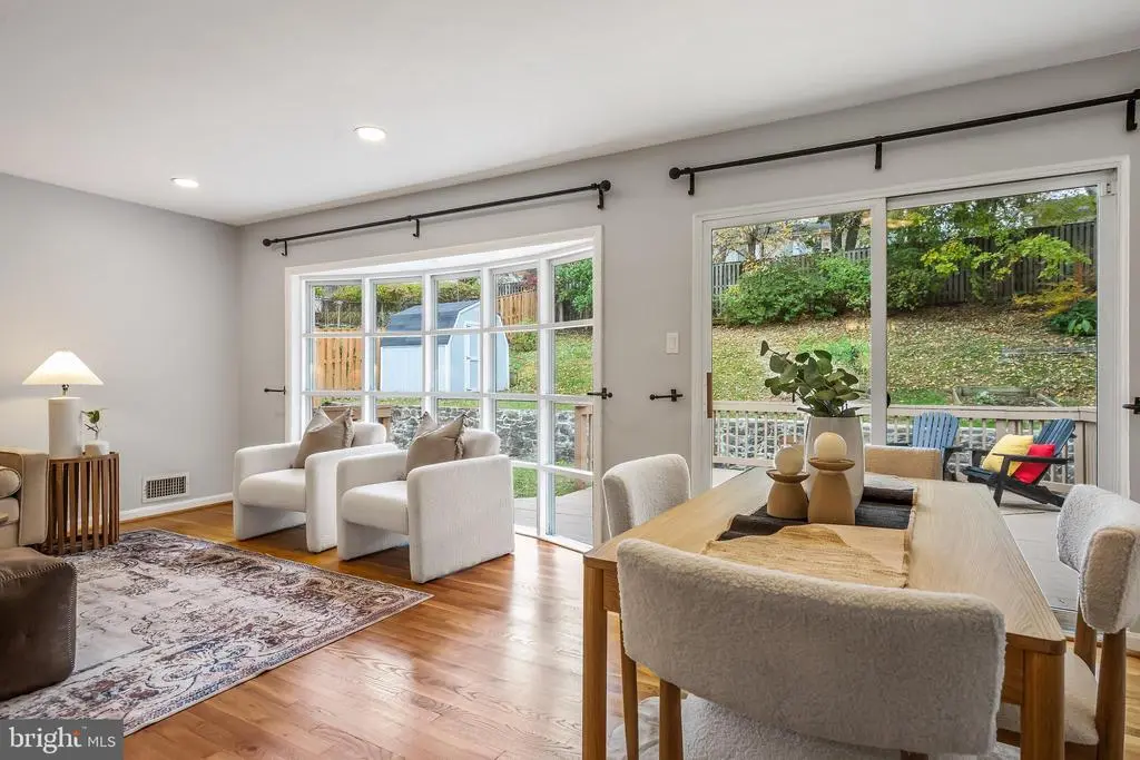 Best in Rockville! Perfectly situated on a quiet, friendly street directly across from the breathtaking greenspace of Dogwood Park, this incredibly spacious, airy, & bright split-level gem boasts stunning refinished oak hardwood floors, a beautifully updated wrap-around kitchen with granite countertops & cabinets galore along with a sizeable eat-in space with its own bay window! The main-level living area features a charming twenty-pane window wall that offers a nod to the home’s mid-century roots and floods the home with natural light along with the dining room’s sliding glass doors that lead to a huge deck overlooking the fully fenced, terraced back yard with plenty of room for sports, gardening, or simply relaxing outdoors with friends. Three same-level bedrooms await upstairs including a primary complete with twin closets & a stylishly renovated en-suite bath, while the lower level features an ample den and highly functional flex room with its own exterior entrance & half-bath, perfect to use as a home office or bonus space for guests. Conveniently close to 270 & 355, an easy walk to Metro, Rockville Town Square, the newly opened Trader Joes, & Bayard Rustin Elementary, and only steps to playgrounds, walking trails, basketball courts, baseball fields, & tennis! Qualified buyers may be able to take advantage of an assumable 3.25% VA loan, please contact listing agent for details.