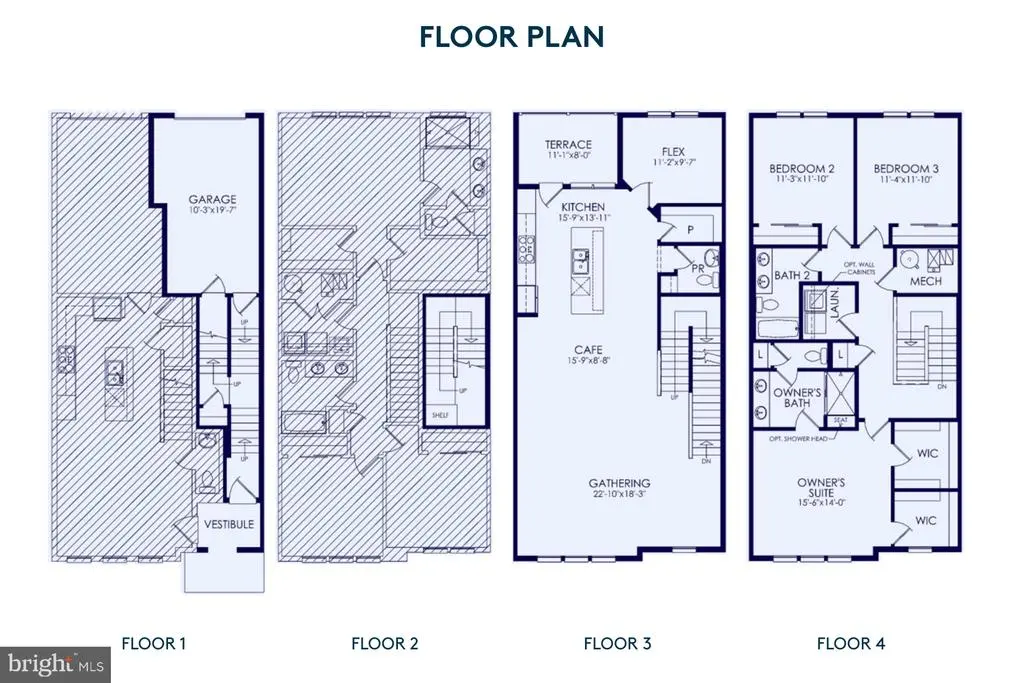 The Sydney is the largest 2-level condo at Farmstead District, offering the space of a townhome with an included terrace off the kitchen and an optional fireplace. It features 3 spacious bedrooms upstairs, including a large owner’s suite with 2 walk-in closets. The first level includes a rear kitchen with a large walk-in pantry, opening to the café and large gathering space. The den can be used as an office. The Sydney at Farmstead District offers abundant natural light with many windows.