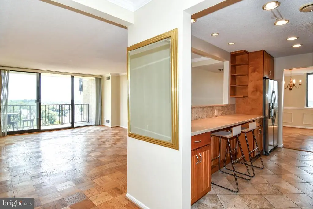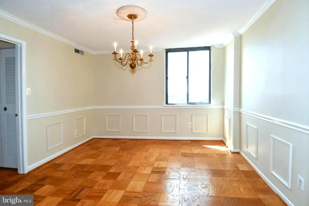 Bright and sunny top floor 2 bedroom 2 full bath condo in the heart of Rockville. Updated kitchen with stainless steel appliances, 42 inch cabinets, quartz countertops, recessed lights, tile backsplash and ceramic floor tiles. Gleaming parquet floors throughout the rest of the condo. Updated bathrooms. Ceiling fan in master bedroom. Large walk-in master closet. New paint throughout. Balcony offers very nice view of Rockville Pike. Condo fee includes all utilities, reseverd parking space and free laundry on the floor. Party room and outdoor pool. Sauna, fitness center and community room. 24/7 concierge service. Storage bin in the basement. Rockville Metro Station across the street. Walking distance to Rockville Town Center with restaurants, grocery store, Starbucks, Montgomery County Library and Regal movie theatre.