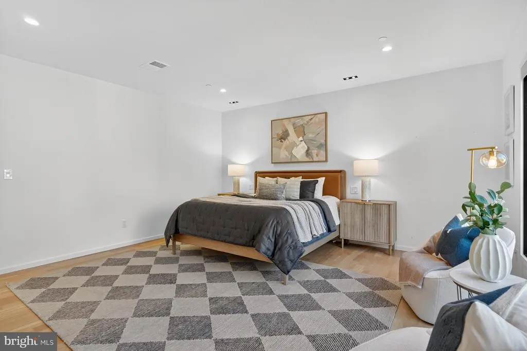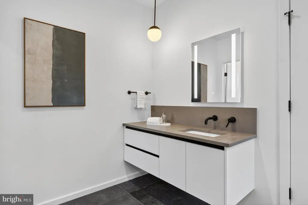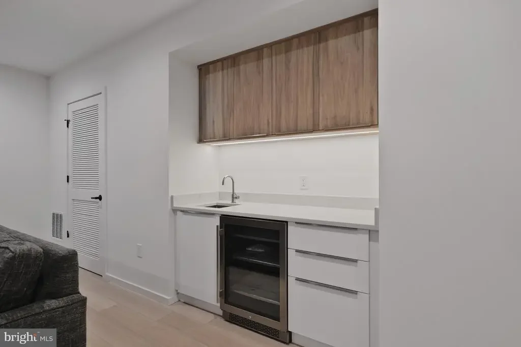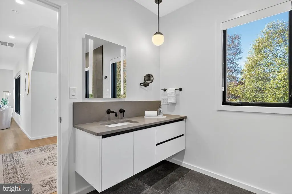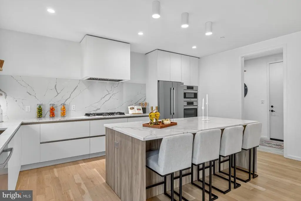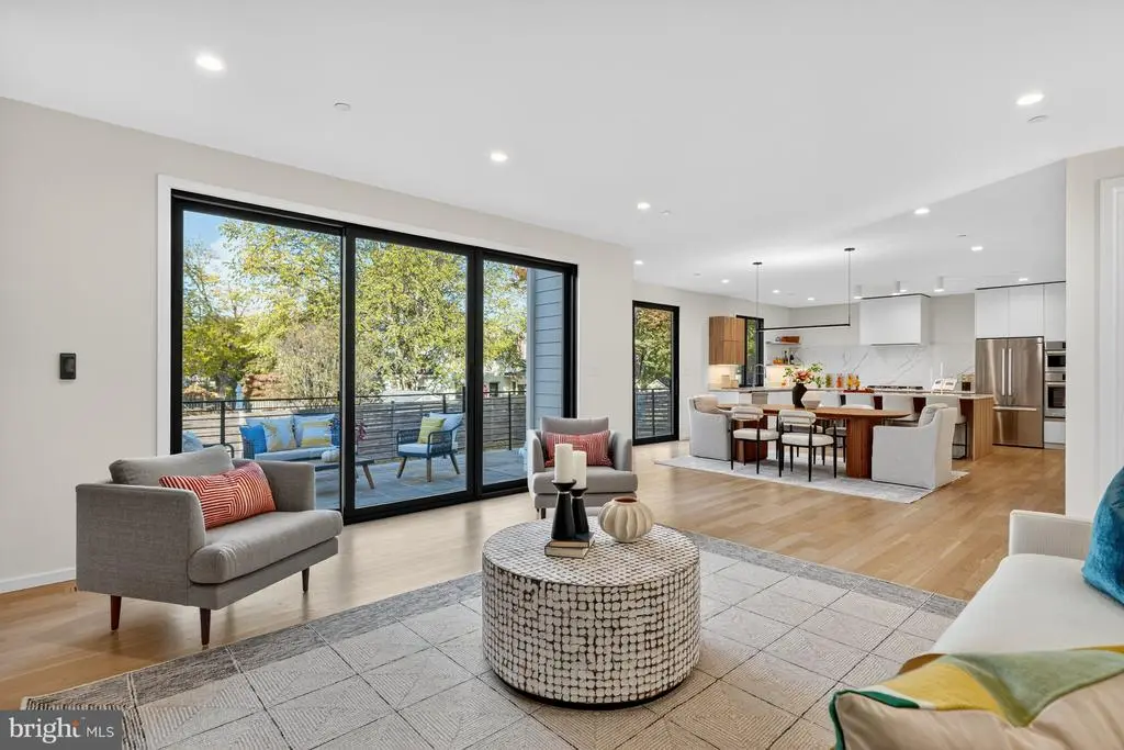 This pristine Scandinavian-inspired home is in a category of its own. Custom-built from the ground up and less than 4 years young, the finishes are superb. Crisp white Hardie lap siding converges with dramatic charred Yakisugi vertical siding at the covered main entrance. Environmentally and financially friendly, this home boasts a fully owned solar panel system. Exceptional features of the dazzling, sundrenched interior include solid white oak hardwood flooring, 9-foot ceilings on all three levels, large-scale Jeld-Wen windows and patio doors, custom shades, and a curated tile selection. Offering 5 bedrooms and 4.5 baths, the floor plan is open and efficient. Main level highlights include: 8-foot doors; a private office; a large living room with a charred cypress accent wall, discreet storage, and a 2-sided corner gas fireplace; an airy dining area with a sleek linear pendant light; a European dream kitchen with custom Marfa handleless cabinetry, an oversized contrasting center island, elegant quartz countertops and backsplash, Bosch stainless appliances, and a walk-in pantry; a mudroom with a built-in bench and cubbies against a shiplap wall; glass door access to the rear grounds. Flanked by a white oak slat wall and illuminated by oversized picture windows, the semi-open staircase ascends to the home’s upper level which offers a spacious primary retreat with an office alcove, 2 walk-in closets, and a gorgeous spa-like bathroom with a free-standing soaking tub, a curbless walk-in glass shower and double floating vanities. Two additional ample bedrooms, each with stylish ensuite bathrooms and walk-in closets, grace the front of the house. A phenomenal central family room and an adjacent laundry room complete the upper level. Providing wonderful overflow options and inviting space for guests, the daylit lower level offers a sizeable recreation room with a wet bar, two bedrooms each with walk-in closets, a full bath with a glass-enclosed shower and built-in bench, and a variety of storage options. Outside, a lovely flagstone terrace with a natural gas connection overlooks the large, lush fully fenced rear yard whereas a 2-car garage and concrete parking pad round out the front. Convenient to downtown Kensington, the Marc train, and two metro stations and in the Kensington-Parkwood/North Bethesda/Walter Johnson school zones, this location is ideal.