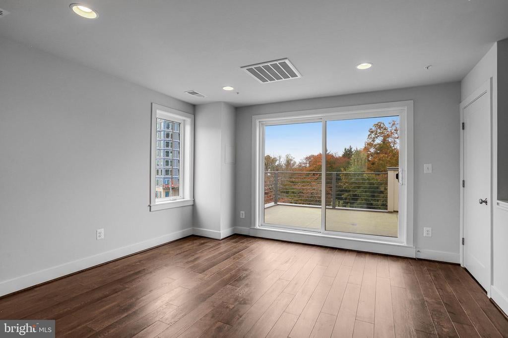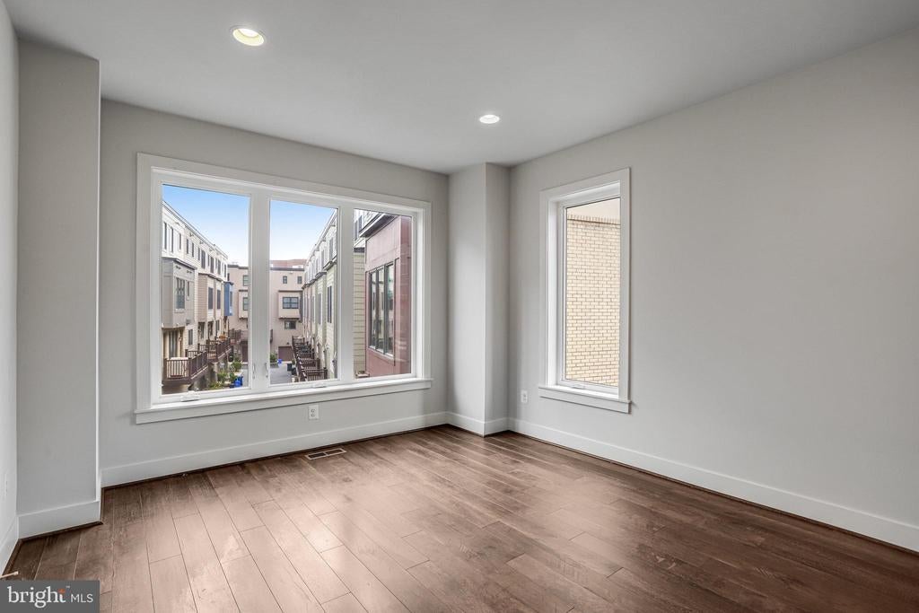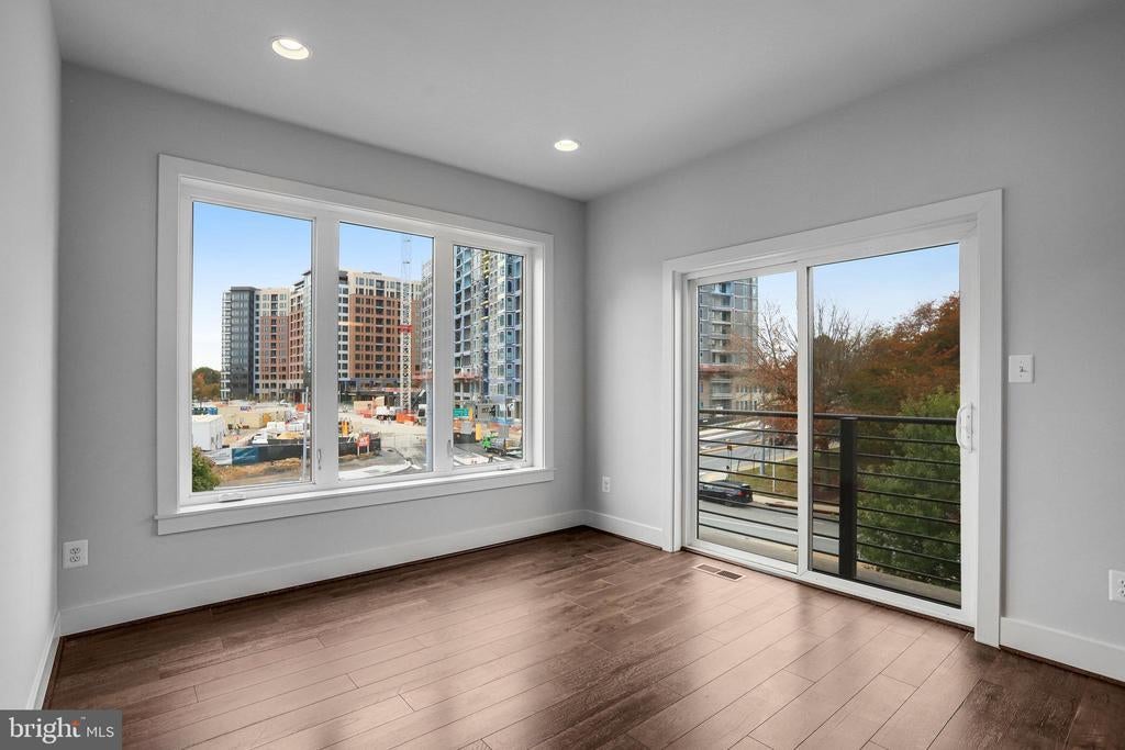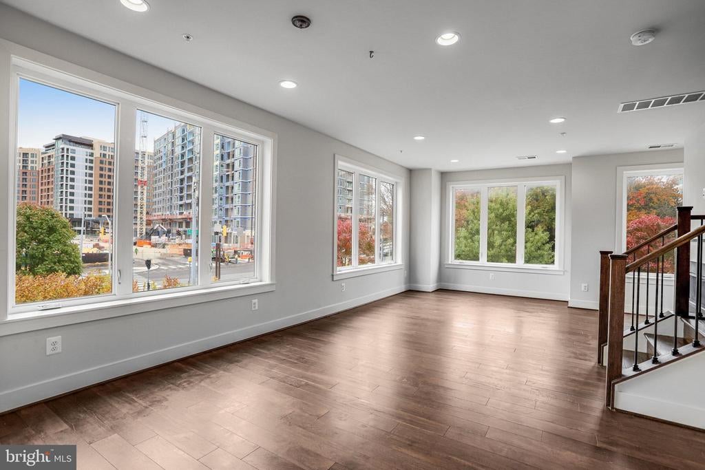 Nestled in highly sought-after Montgomery Row, this luxury 4-Level End-Unit Townhome is Ideally located for commuters and those seeking a vibrant, high-quality lifestyle. This prime location offers easy access to I-270, I-495, and Metro connections via community shuttle, all while being steps away from Westfield Montgomery Mall and Wildwood Shopping Center, with endless dining, shopping, and entertainment options. Enjoy a pedestrian-friendly community featuring a landscaped park, playground, promenade, and walking paths—perfect for relaxed evening strolls. Built in 2018, this light-filled end-unit sits on a premium lot with unobstructed views and exceptional upgrades throughout. The home offers 4 bedrooms, 3.5 bathrooms, a 2-car attached garage, and two additional parking spaces (street and garage). Highlights include: Modern open-concept design with upgraded hardwood floors on all 4 levels; Stylish fireplace, Designer kitchen with a large center island, built-in microwave with external exhaust, gas-cooking cooktop, oven, and balcony facing a quiet alley (not neighboring homes); Spacious master suite with windows on two exterior walls, walk-in closet, and luxury bathroom finishes; Second guest suite with city views, and windowed ensuite bathroom; Top-level private apartment suite with bedroom, full bath, and living room opening to a rooftop terrace—perfect for entertaining and enjoying the city lights. Built to LEED for Homes standards by the U.S. Green Building Council, this home combines sustainability, energy efficiency, and modern comfort—all in one of Bethesda’s most desirable commuter-friendly neighborhoods. This property is not just a house; it's a place where cherished memories are made and a lifestyle of elegance is embraced. Don't miss the opportunity to make this exceptional residence your own.