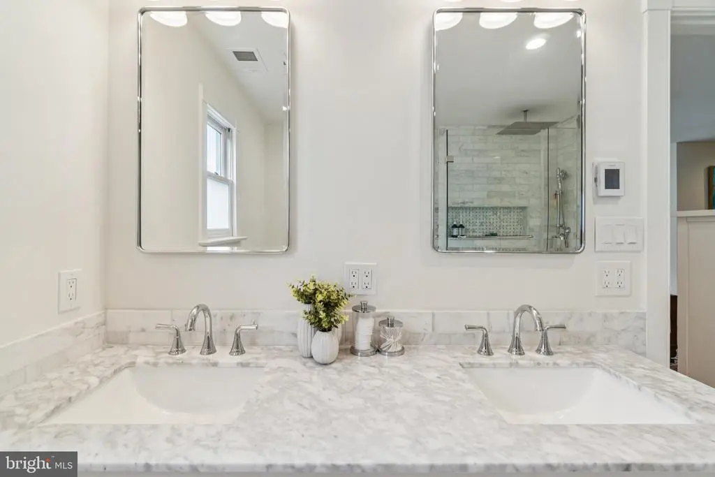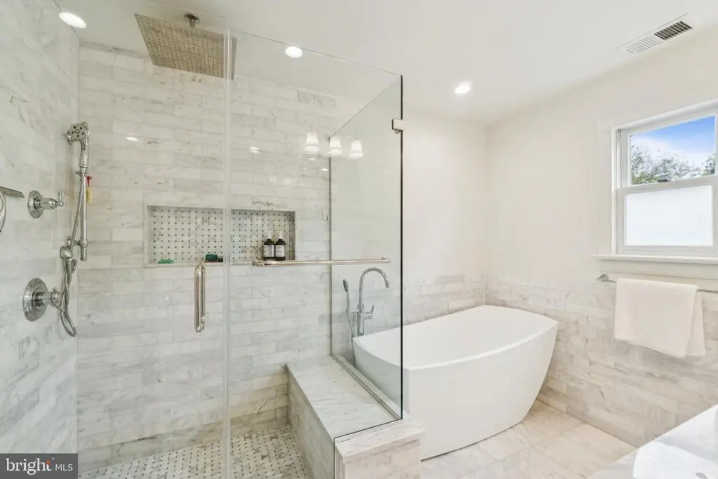 This beautiful Victorian nestled on the highly sought-after Stanford Street in the Town of Chevy Chase, exudes timeless elegance and modern comforts. As you step inside, you're greeted by a grand foyer and entrance that sets the tone for the rest of this impressive home. The main level boasts high ceilings and a spacious family room, complete with a cozy wood-burning fireplace, plus a living room and formal dining room. The beautifully appointed eat-in kitchen is a chef's delight, offering ample space for culinary creations and family meals. From the kitchen, step out to a large screened-in porch, ideal for comfortably enjoying the outdoors. Conveniently located adjacent to the kitchen is a spacious laundry room and pantry, along with a practical mudroom that provides easy access to the backyard and the detached garage. Head upstairs to discover the spacious bedrooms, including a luxurious master suite featuring a beautifully renovated ensuite bathroom with a double vanity, oversized shower and soaking tub, plus two walk-in closets. Additionally, there are three more generously-sized bedrooms, each with large closets, sharing another beautifully updated full bathroom. The fully finished lower level expands the living space further, offering an additional bedroom, a full bathroom, and versatile living areas for your needs. This location offers unparalleled convenience, with a short stroll bringing you to downtown Bethesda, Trader Joe’s, Target, Norwood Park, the Capital Crescent Trail, the Lawton Community Center, and the Red Line Metro. Embrace the charm of neighborhood events and the ease of access to all your daily needs. This home truly embodies a blend of historic charm and modern amenities, making it a rare find in a coveted location.
