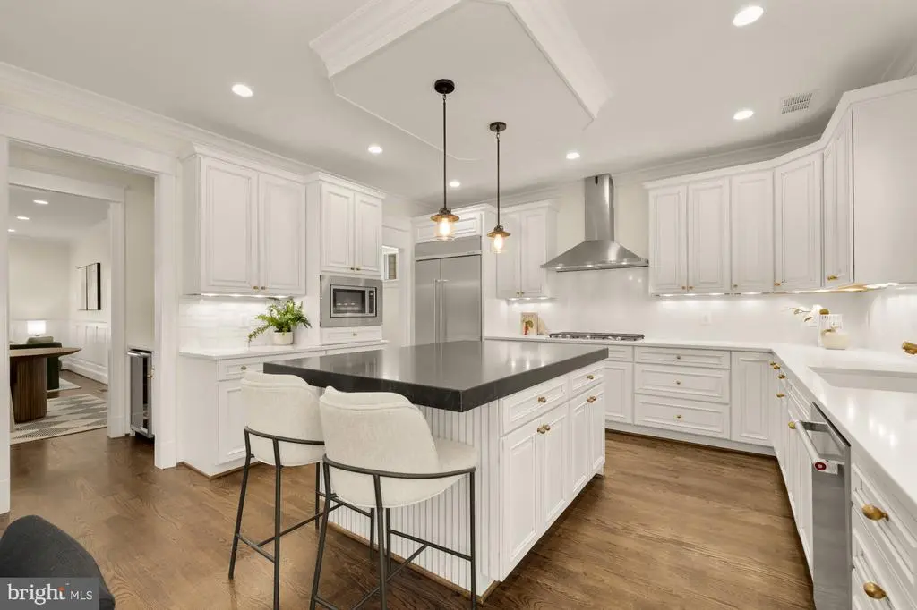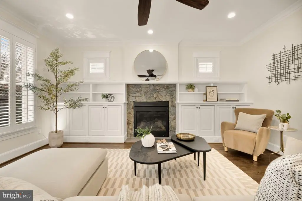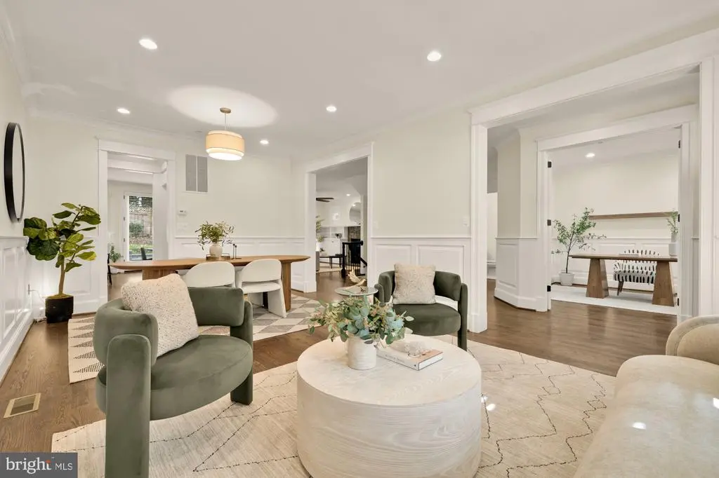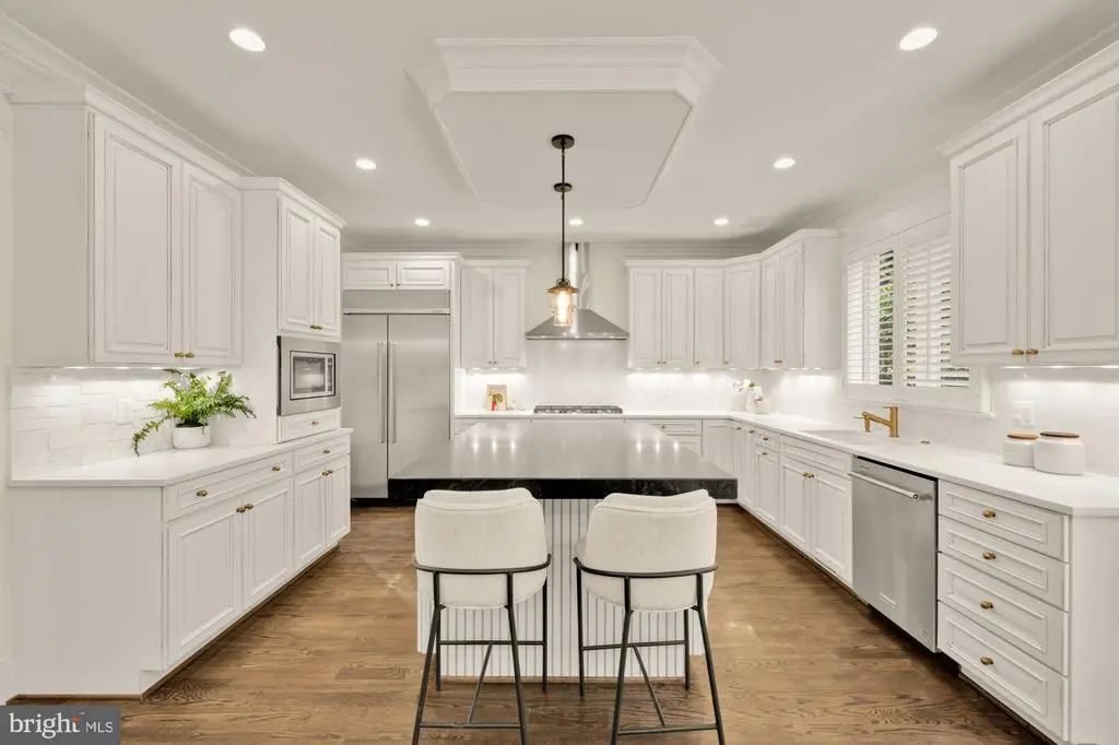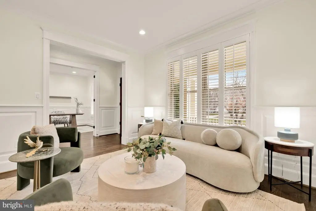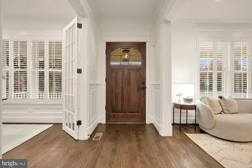 Timeless Character Meets Modern Comfort in the Heart of Bethesda Experience a blend of refined design and thoughtful layout in one of Bethesda’s most desirable neighborhoods. From the charming front porch to the richly paneled interiors, every detail of this home reflects elevated living and everyday functionality. Inside, the main level showcases custom millwork and detailed paneling, adding depth and texture to every room. The layout includes a spacious home office, an inviting sitting room, and a large dining room that easily accommodates both family gatherings and formal entertaining. At the heart of the home is the kitchen, featuring custom cabinetry, a center island, two ovens, and seamless access to the mudroom and attached one-car garage. The kitchen flows effortlessly into the sunlit breakfast area and open family room with built-ins, creating the perfect setting for everyday living or entertaining. French doors open to the stone patio and manicured lawn adorned with café lights, extending the living space outdoors. Upstairs, the primary suite offers a serene retreat with a designer-renovated bath (2022), dual walk-in closets, and a bright, airy atmosphere. Two additional bedrooms share a beautifully renovated hall bath, while a fourth bedroom with an ensuite bath provides ideal guest accommodations. A laundry room and open nook—perfect for a study area, gaming space, or yoga zone—complete this level. The top floor features a large, carpeted bonus space which functions beautifully as a second office, playroom, or storage area. The lower level offers even more flexibility with one bedroom, a full bath, a spacious recreation room, media room and a dedicated gym area. With its combination of classic Bethesda charm, custom upgrades, and versatile layout, this home delivers an unmatched living experience in one of the area’s most desirable neighborhoods — just moments from Downtown Bethesda, Metro, NIH, and top-rated schools.
