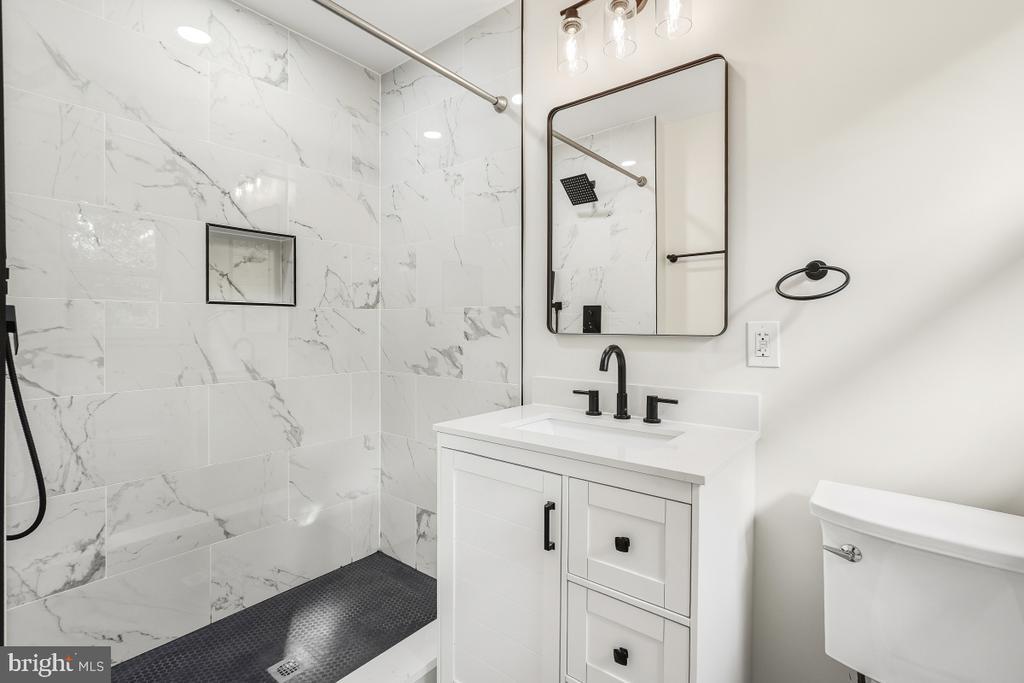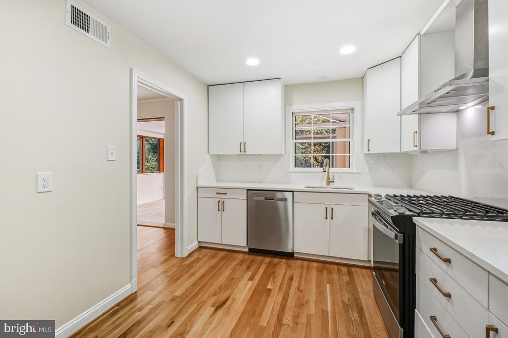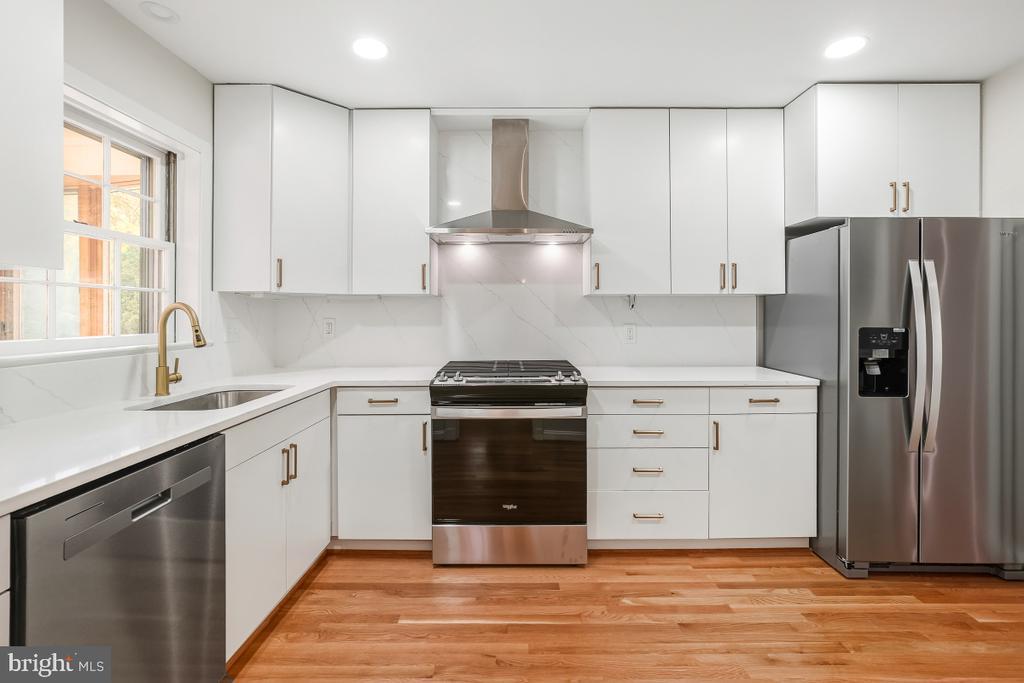 Renovated from top to bottom, this 4-level split home offers almost 3400 sf of living space and a very flexible floorplan! The gracious foyer leads to a massive LR with a gorgeous coffered ceiling and a wood-burning FP! The DR opens to a glass-enclosed sunroom with a cathedral ceiling and terrific view of the treed backyard. The sunroom in turn leads to a new deck and patio, and the flow of the main level makes entertaining a breeze! There are 3 spacious BR's upstairs, 2 new baths, and gorgeous hardwood floors on 2 levels! Lower level one includes a FR, new 3rd bath, bar area, and an over-sized garage with lots of storage. The 4th level includes a BR, a den plus an additional rec room with a separate entrance! The possibilities are endless (in-law suite, home office, and more!) Other features include a new 2-zone HVAC system, newer roof, and a renovated kitchen with gorgeous SS appliances, quartz countertops and undermount lighting! All of these upgrades and today's lower interest rates make this home an unbeatable value in today's market!