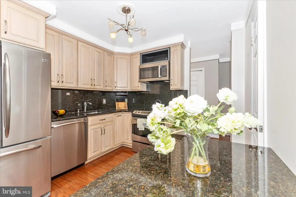 Open House Sunday 11/09/25 rom 1-3 pm . Sunny, Spacious Corner Condo with Panoramic Views! Enjoy natural light and open living in this beautifully updated 2-bedroom, 2-bath corner unit on the 3rd floor, complete with a private balcony overlooking scenic treetop views. The home showcases a renovated kitchen with granite countertops, stainless steel appliances, and a large granite breakfast bar that opens to the living and dining areas — ideal for entertaining or everyday comfort. Gleaming hardwood floors, crown molding, and elegant finishes continue throughout. The primary suite offers both a walk-in closet and an additional large closet, along with a luxury renovated bath featuring granite vanity, designer tilework, and a spa-style shower/tub. The second full bath has also been stylishly updated. Two sliding glass doors from the living room lead to a generous balcony that easily accommodates an outdoor seating area — perfect for morning coffee or evening sunsets. The building offers extra storage, bicycle storage, and a full range of amenities including a pool, tennis courts, tot lot, and picnic area by the lake. The condo fee covers all utilities for truly worry-free living. Unbeatable location: minutes to I-270, I-495, and Westfield Montgomery Mall with its shops, restaurants, and movie theaters. Nearby Cabin John Park offers top-rated schools and family-friendly recreation — making this home an exceptional value and lifestyle choice. Dead line for offer is Tuesday by 6 pm if any (11/12/25)
