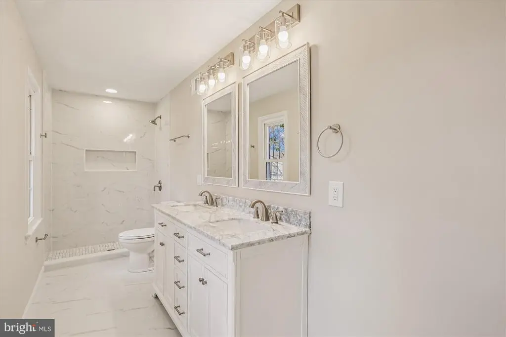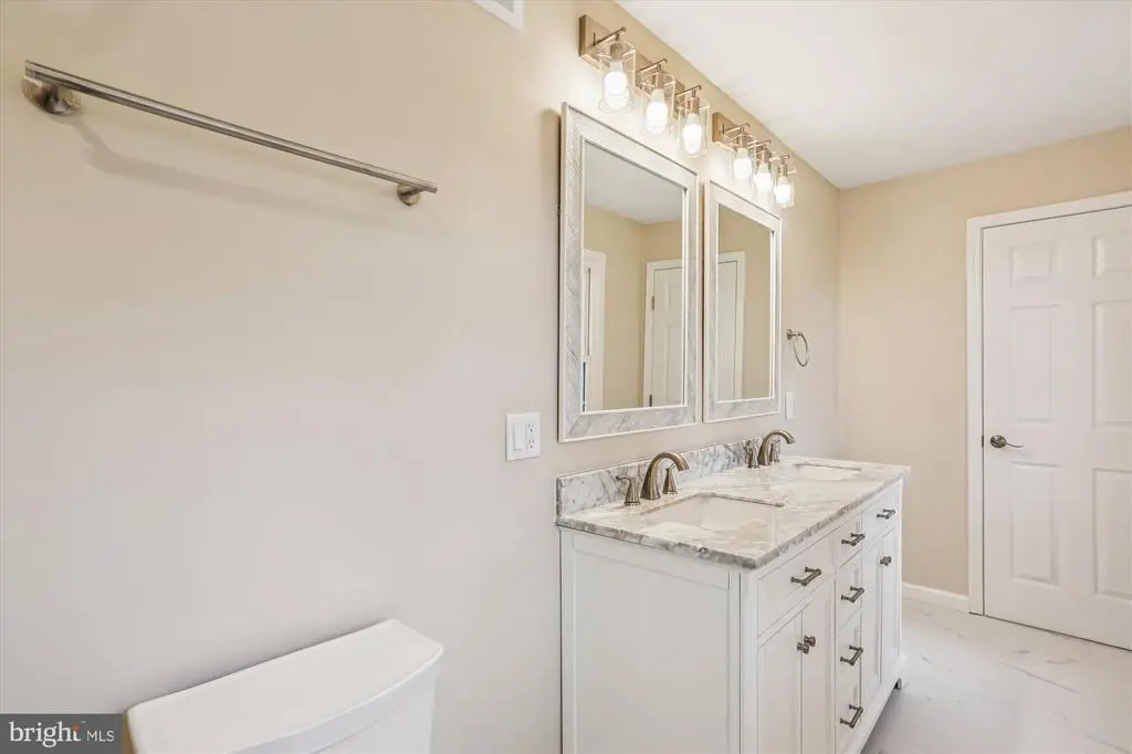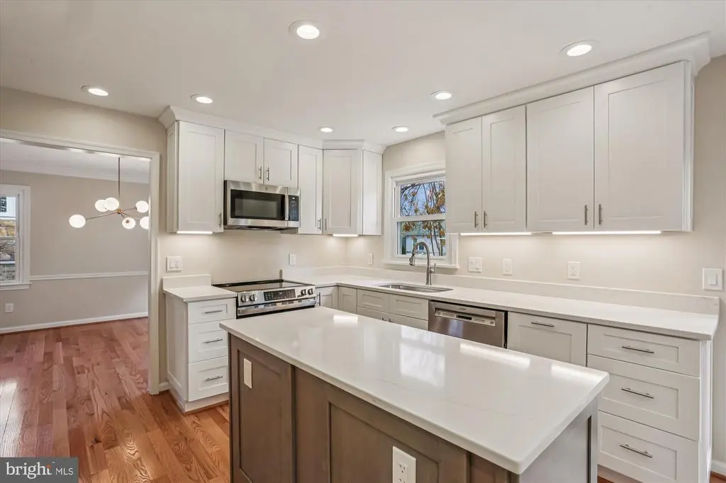Welcome Home to Horizon Hill! This completely renovated Colonial in the sought-after Horizon Hill neighborhood of Potomac offers the perfect blend of timeless style and modern comfort. From the moment you step into the spacious entry foyer—complete with dual guest closets and elegant recessed lighting—you’ll feel the attention to detail and quality craftsmanship that make this home truly special. Gleaming hardwood floors flow throughout the main level, complemented by fresh paint and natural light streaming in through expansive floor-to-ceiling windows. Entertain with ease in the formal living and dining rooms, each designed for both comfort and sophistication. The dining room features designer lighting and classic chair rail detailing, while the living room’s windows create a bright, airy ambiance. The fully renovated eat-in kitchen is a chef’s delight, showcasing abundant soft-close cabinetry—some with glass fronts—extensive quartz countertops, and a brand-new stove. A sliding glass door opens to a paver patio and large, privacy-fenced rear yard—perfect for outdoor dining and relaxation. The main level continues to impress with a cozy family room highlighted by a whitewashed brick fireplace wall, plus a convenient mudroom featuring additional storage cabinets, a utility sink, and a full-sized washer and dryer with direct garage access. Upstairs, the luxurious primary suite offers a serene retreat with a sitting room, walk-in closet, new carpeting, and a spa-like bath with dual sinks and a shower. Three additional bedrooms, all freshly carpeted, and a stylish hall bath complete the upper level. The fully finished lower level expands your living space with a bright recreation room, a bonus room ideal for guests or a home office, and a brand-new designer full bath. With recessed lighting, new flooring, and fresh paint throughout, every detail has been thoughtfully considered. An oversized two-car garage, spacious fenced backyard, and proximity to parks, top-rated schools, shopping, and major commuter routes make this home a rare find. Move-in ready and truly “like new,” this Horizon Hill gem is waiting for you to make it your own!