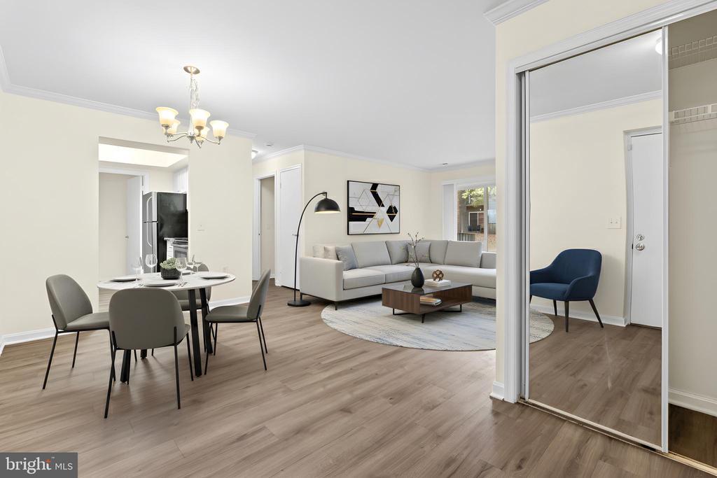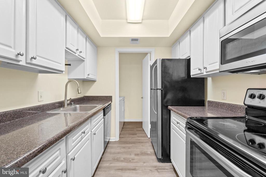 This charming 1-bedroom, 1-bathroom condominium, located in the vibrant Flower Hill community, offers 802 square feet of thoughtfully designed living space. The unit features a traditional layout with a combined living and dining area, perfect for both entertaining and relaxation. With recently installed modern flooring and freshly painted interiors, this condo is truly ready to move in. Enjoy the convenience of having a washer and dryer in-unit, enhancing your daily living experience. Situated on the first floor, this condo also includes a private entrance from the back, providing an added layer of privacy and ease of access. Residents enjoy a wealth of community amenities, including a seasonal swimming pool, tennis courts, a clubhouse, walking paths, and basketball courts. The property's prime location guarantees easy travel with nearby access to public transportation and major highways such as Shady Grove Metro Station, I-270, ICC-200, and I-495. Additionally, enjoy the convenience of being within walking distance to grocery stores, restaurants, Starbucks, McDonald's, and more. Off-street parking is also included. This is an opportunity not to be missed for those seeking comfort and convenience in Gaithersburg.