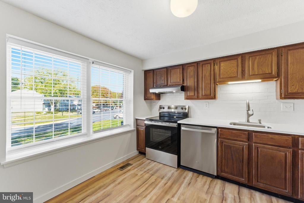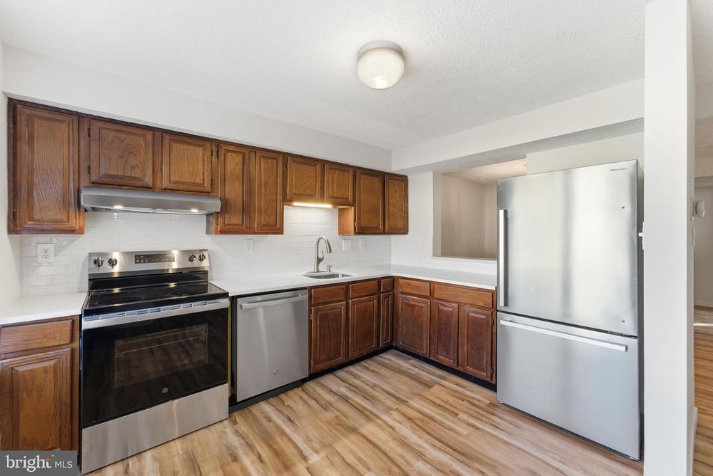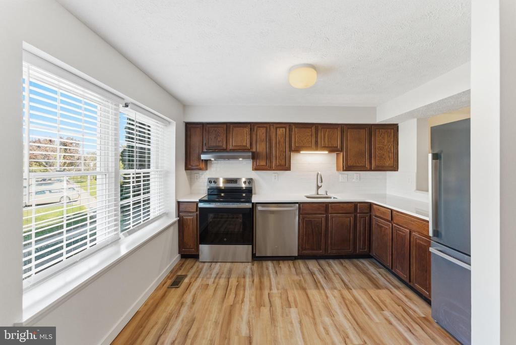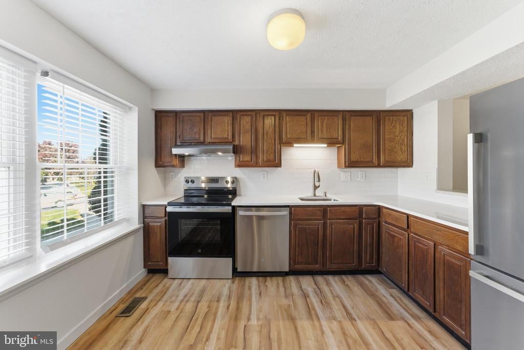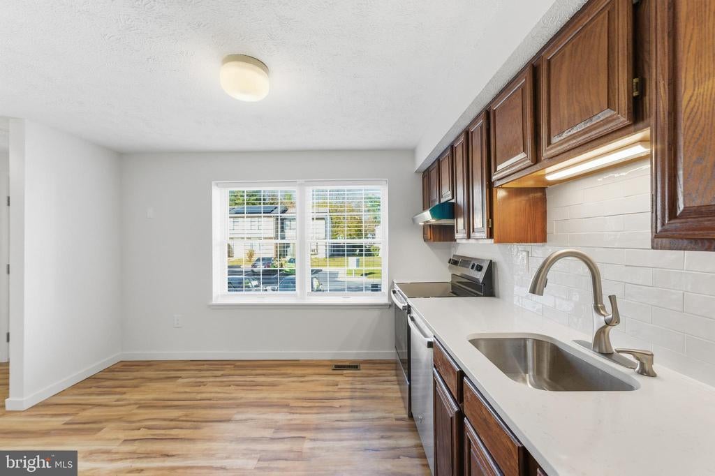 Rarely available end-unit brick townhome in Oak Springs! This spacious nearly 2,000 sq. ft. home is the largest model in the community and shines with thoughtful updates throughout. Freshly painted inside and out and featuring all-new luxury vinyl plank flooring and carpet, this residence offers the perfect balance of style, comfort, and convenience. The main level features a bright, table-space kitchen with brand-new quartz countertops, stainless-steel appliances, subway-tile backsplash, and brand-new LVP flooring. A newly renovated powder room and generous living and dining areas complete the ideal main-level layout. Upstairs, you’ll find three bedrooms and two full baths, including a spacious primary suite with walk-in closet and abundant natural light. The finished lower level provides a comfortable recreation room with a daylight walkout, flexible space for a home office or gym, and plenty of storage options. Step outside to discover one of this home’s most unique highlights — a level, private, and fully fenced backyard that’s substantially larger than most yards in the community. It’s an inviting space for gatherings, play, gardening, pets or quiet relaxation. A storage shed provides extra convenience for tools and outdoor gear. Ideally located near Good Hope Local Park, residents enjoy access to playgrounds, tennis and basketball courts, sports fields, a splash park, and a modern community center—all just moments away. The neighborhood also offers easy access to shopping, dining, major commuter routes, and public transportation, blending suburban serenity with everyday convenience. Beautifully updated and move-in ready, this Oak Springs gem offers exceptional space, modern finishes, and a highly desirable location. Don’t miss your chance to make it yours!