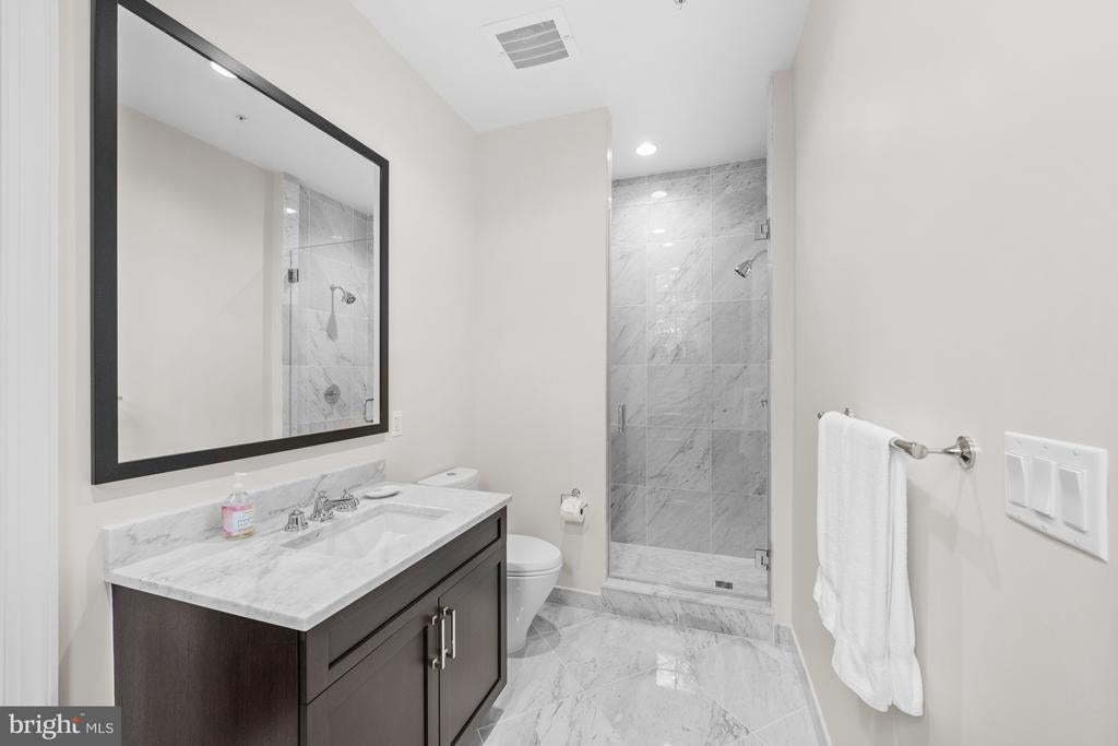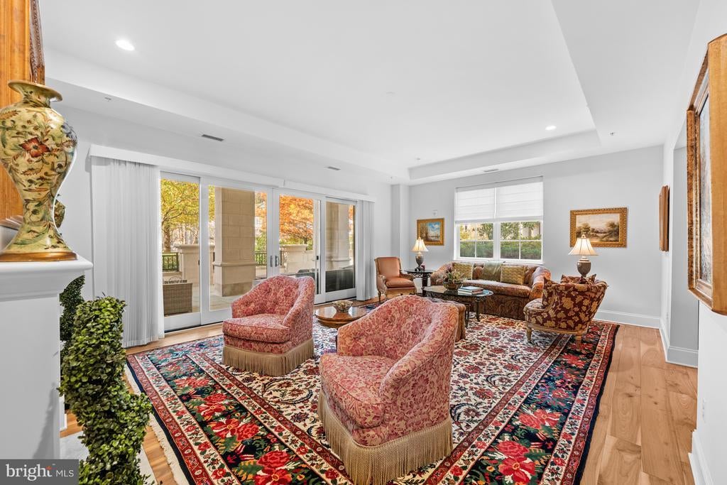 A once in a lifetime opportunity to own this stunning and rarely available Quarry Springs main level luxury true 3 bedroom condominium with three landscaped terraces surrounded by the gardens of the property. This residence lives as if it were a one story home with artfully crafted room sizes and an exciting floorplan. The captivating room sizes are expanded by the outdoor living spaces seen from almost every room. Top of the line finishes and mouldings, along with top of the line appliances are the hallmarks of this very special residence. The entry foyer has a gallery feel with more than ample space for artwork. A welcoming living room with fireplace opens to the full size dining room, The spacious gourmet kitchen, flooded with light will delight you with marble countertops, and an oversized marble island that is adjacent to an expansive family room opening to one of the 3 terraces. The primary suite with spacious bath and more than ample closet space opens to its own terrace. Two additional bedrooms and a shared bath along with an elegant powder room and separate laundry room complete the main level. Quarry Springs is a private gated luxury community with clubhouse, pool and 24 hour security at the gatehouse and a 24 hour concierge in the lobby of the building. Luxury living at its finest in a secure gated community. Two car assigned garage parking is included with the residence and has elevator access to the lobby of the building. Approximately 25 minutes to Dulles and Reagan airports, and the White House. All the benefits of luxury living with a minimum of maintenance. Hurry this home is special!