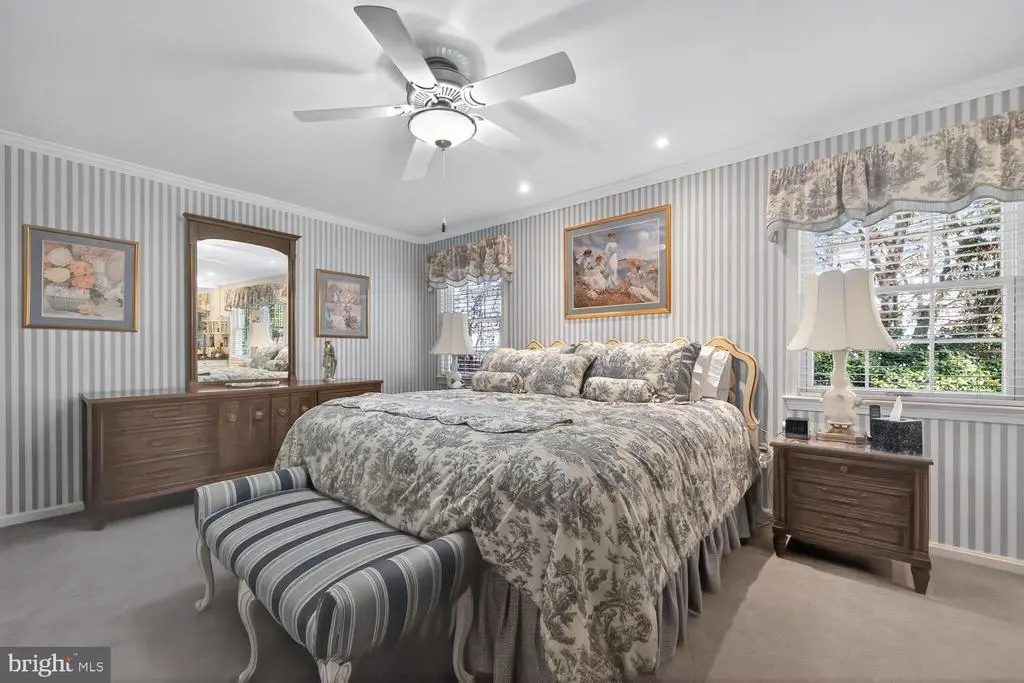 Bathroom - Soaking Tub, Built-Ins, Carpet, Ceiling Fan(s), Crown Moldings, Entry Level Bedroom, Recessed Lighting, Upgraded Countertops, Wainscotting, Window Treatments, Wood Floors