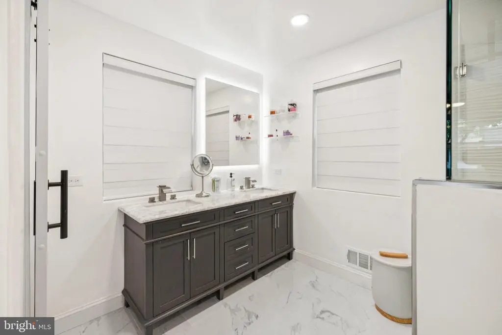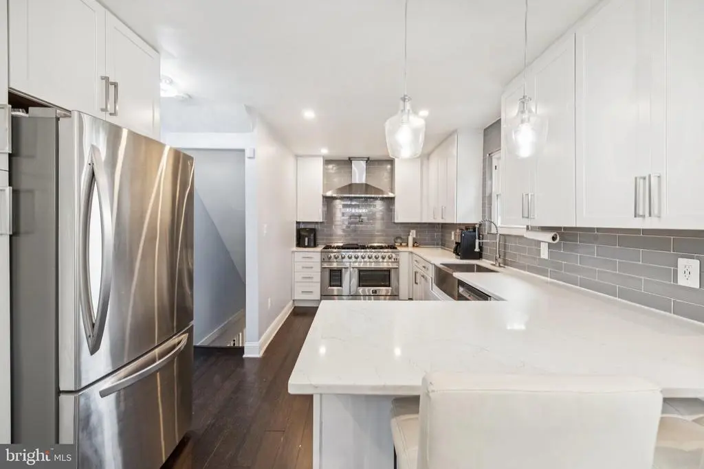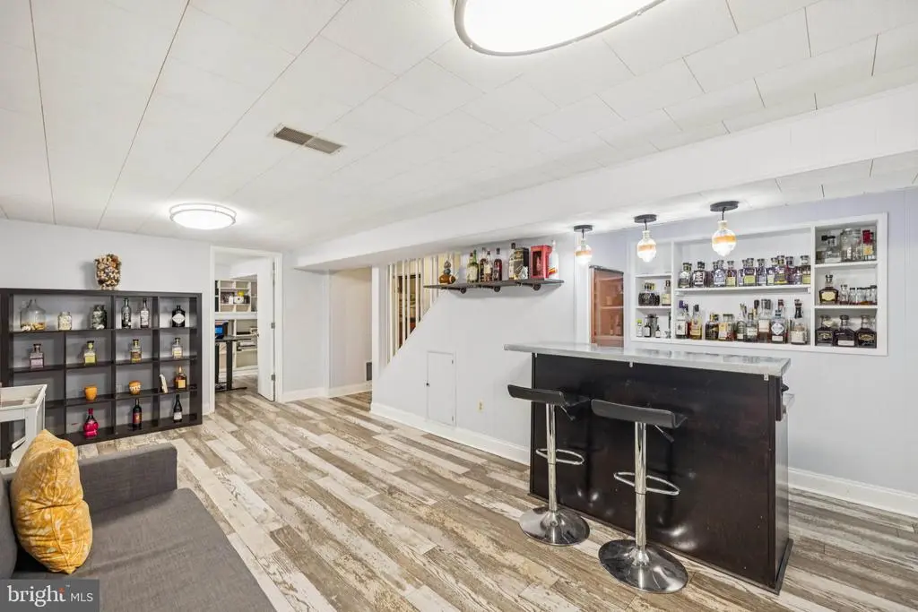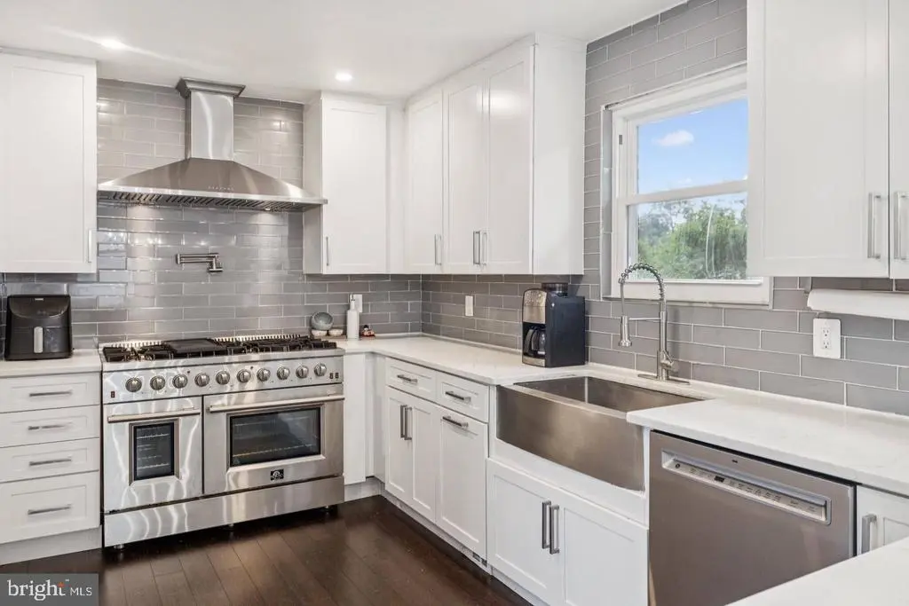 Tranquil retreat with modern charm & outdoor entertaining spaces. Welcome to this beautifully updated 4-bedroom | 2.5-bath home that perfectly balances comfort, style, and functionality. Freshly painted and featuring bamboo flooring throughout the main level, this home exudes warmth and relaxed sophistication the moment you walk through the door. The main living area is bright and inviting, ideal for both relaxing evenings and casual entertaining. The sleek, renovated kitchen features white shaker cabinetry, a gas range with double oven, quartz countertops, and a deep stainless steel farmhouse sink—all accented by a chic gray glass subway tile backsplash. Retreat to the luxurious primary suite, where the spa-inspired bathroom awaits. Unwind in the oversized walk-in shower, complete with a rainfall shower head and modern tile finishes, offering a true at-home spa experience. Step outside to your private backyard sanctuary, a lush retreat framed by mature trees and privacy hedges. Two fully fenced-in vegetable gardens provide the perfect space for cultivating your own farm-to-table lifestyle, while the expansive lawn and patio offer the ultimate setting for outdoor entertaining or serene relaxation. String lights and a charming archway add ambiance, creating an inviting setting day or night. The finished basement includes a stylish home bar, ideal for hosting gatherings or enjoying a quiet evening in. With 4 spacious bedrooms, 2 full baths, a convenient powder room, and thoughtfully designed living spaces throughout, this home checks every box for comfort, style, and function.