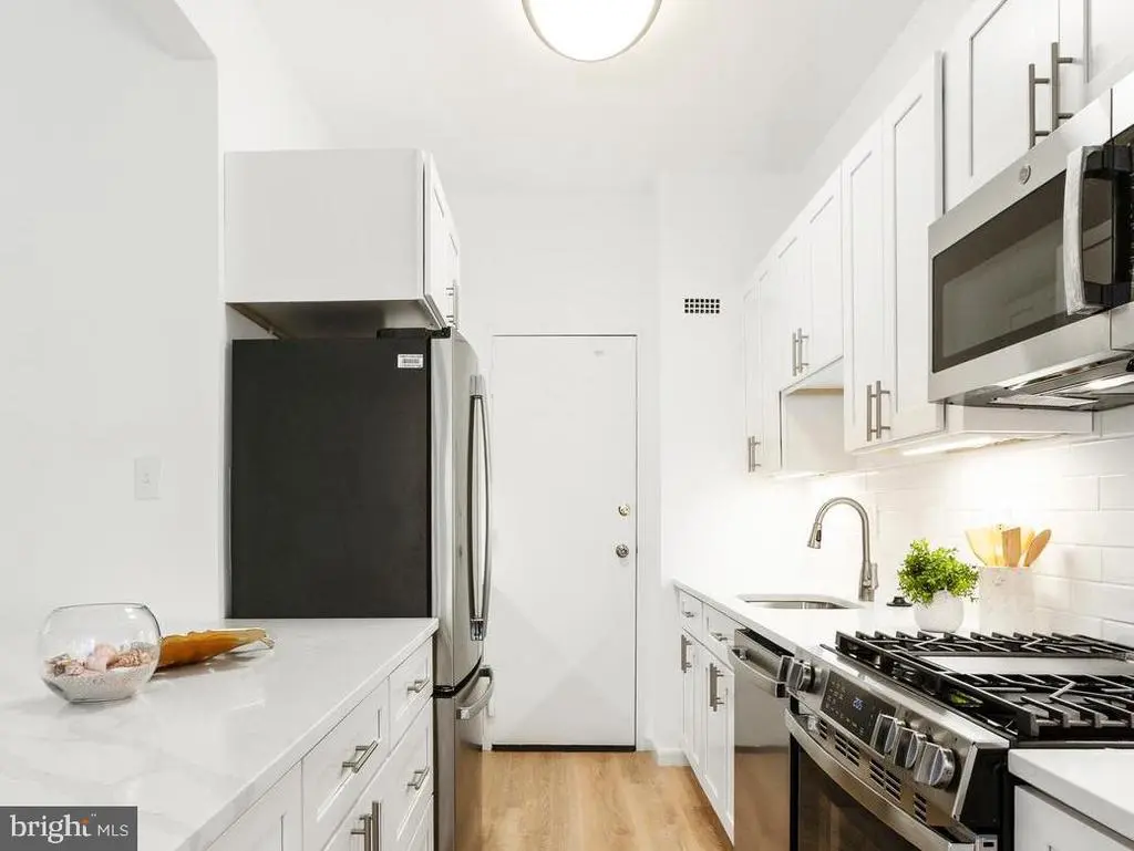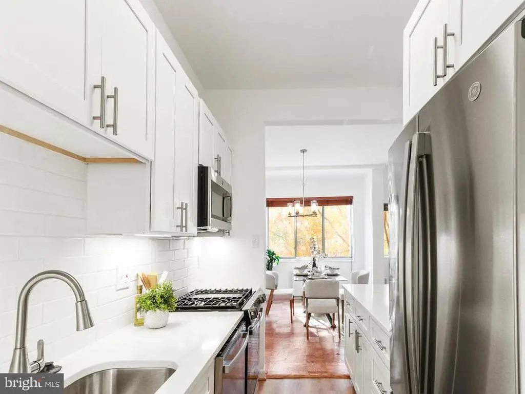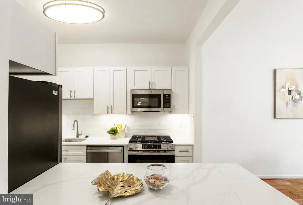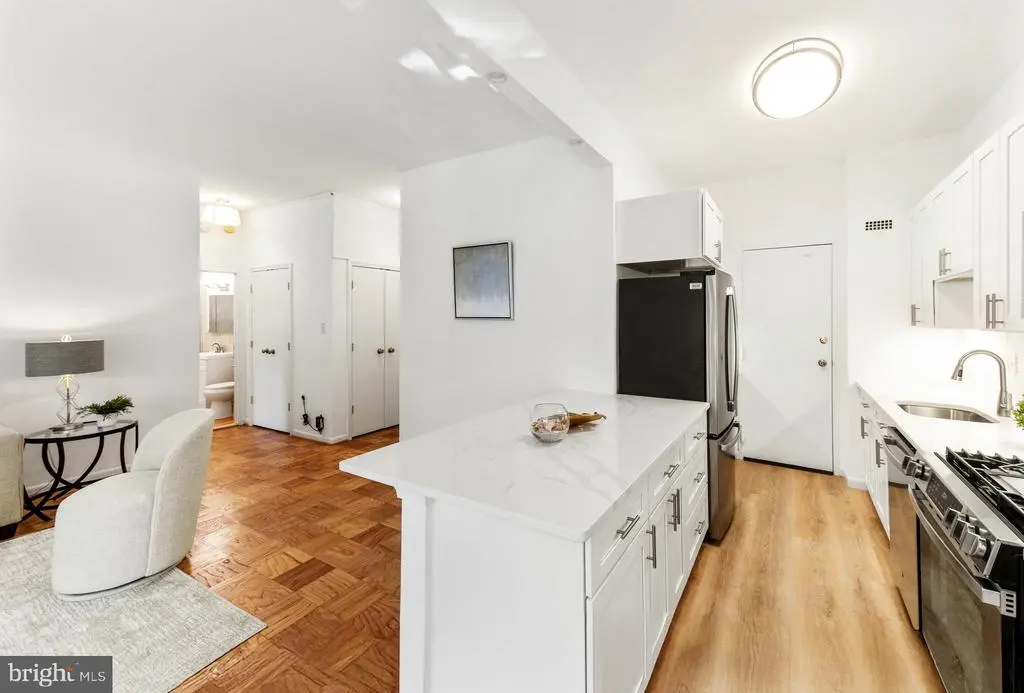 *All utilities + Verizon Internet & Cable Are Included in the Condo Fee!* Experience elevated living in this thoughtfully renovated one-bedroom residence, ideally positioned on the mezzanine level with serene views of the trees and outdoor pool. The open layout offers a seamless flow, featuring a freshly painted interior, newly refinished parquet hardwood floors, and brand-new quartz kitchen countertops complemented by stainless steel appliances. The updated bath adds a touch of modern refinement with new luxury vinyl plank flooring, vanity, toilet, and medicine cabinet. Strategically updated, move-in ready, and designed for ease—this is elevated condo living with every detail considered. All utilities—including Verizon Internet & Cable—are covered in the condo fee. PLEASE NOTE: Grosvenor Park II has a strict no-pet policy.