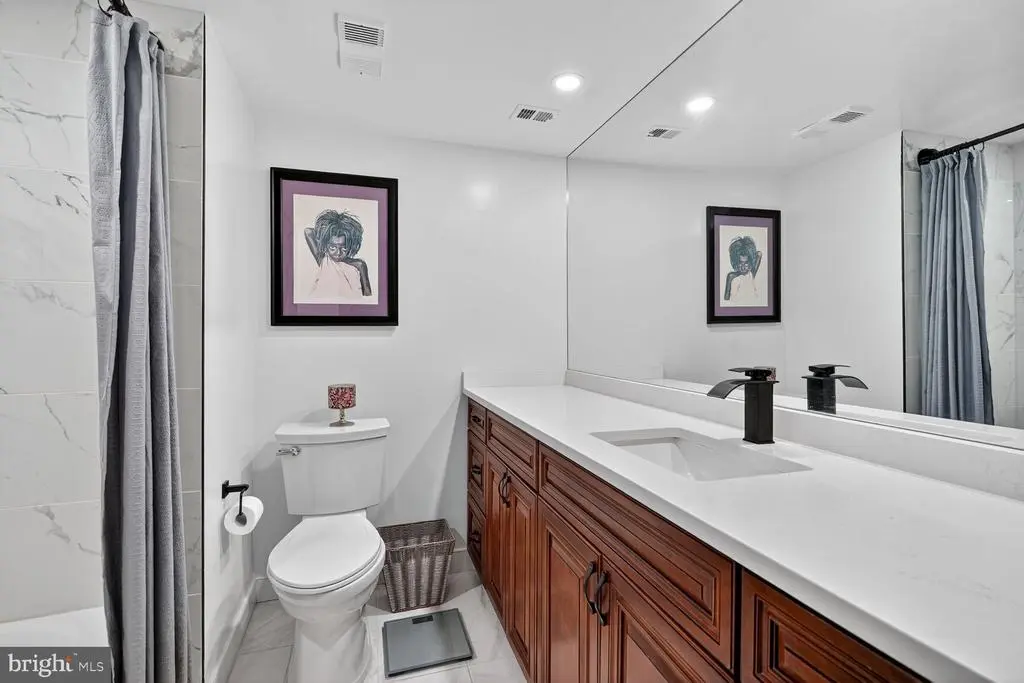 Bathroom - Tub Shower, Recessed Lighting, Wood Floors