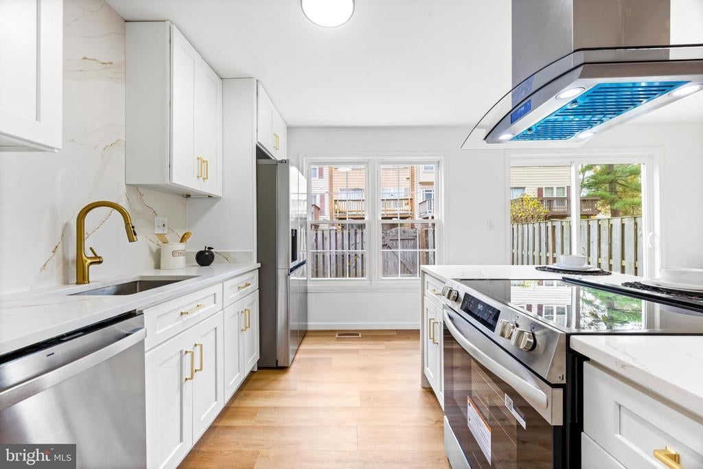 Welcome to 9834 Maple Leaf Drive — a beautifully renovated three-level townhome in the desirable Shadow Oak community. Every detail of this 4-bedroom, 3.5-bath home has been thoughtfully updated to deliver modern comfort and style. The main level features an open-concept layout with new flooring, recessed lighting, and a bright living area anchored by a sleek electric fireplace insert—perfect for creating a warm and inviting atmosphere. The dining area flows seamlessly into the stunning new kitchen, which boasts quartz countertops, stainless steel appliances, a large center island with seating, and two-tone cabinetry that adds a designer touch. Upstairs, you’ll find three spacious bedrooms, including a tranquil primary suite with a modern en-suite bath and ample closet space. The fully finished lower level offers a potential fourth bedroom/office space, full bath, and a large recreation room with walk-out access to a private fenced patio—ideal for guests, a home office, or movie nights. Additional updates include fully renovated bathrooms, upgraded lighting, new flooring, and fresh paint throughout. Two assigned parking spaces and access to community amenities—including a pool, playgrounds, and walking paths—enhance the appeal. Conveniently located near shopping, dining, parks, and major commuter routes, this move-in-ready home blends thoughtful updates with comfort and convenience.