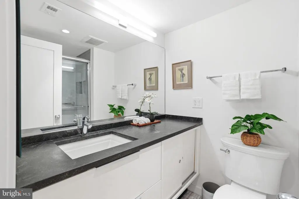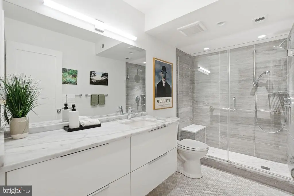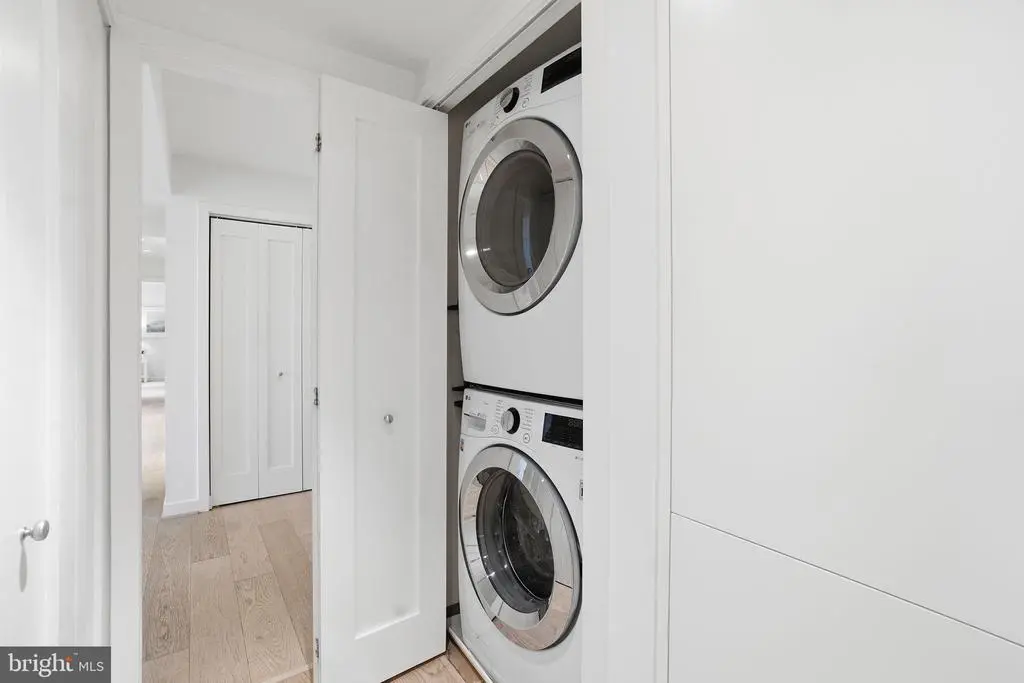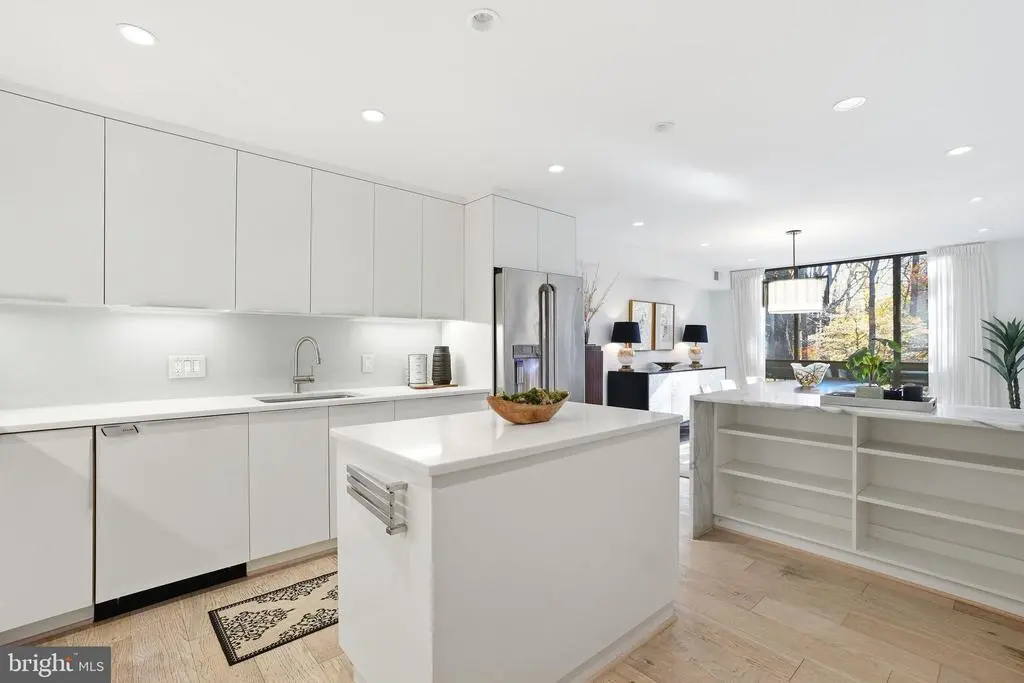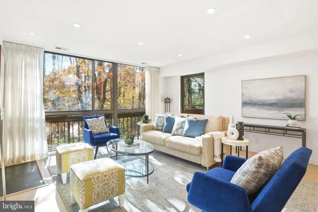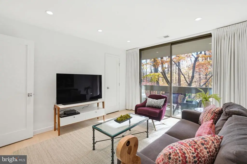 Home for the holidays! Welcome to this stunningly renovated, move-in ready 2-bedroom condo located in the highly sought-after Sumner Village community. Set amid lush, wooded acreage, this upper-floor residence (4th out of 5 floors) FACES THE WOODS, NOT THE PARKING LOT, offering beautiful wooded views from every room. The carefully designed open floor plan features wide-plank hardwood floors and a spacious living room with a wall of windows that fills the space with natural light. Plus, THE FLOORS HAVE BEEN LEVELED TO REMOVE ALL STEPS, creating a seamless flow throughout! The beautifully renovated kitchen offers ample, all-custom white cabinetry, high-end countertops and large breakfast bar with a waterfall-edge, a pantry, high-end cooktop, and stainless steel appliances. A WOOD BURNING FIREPLACE in the living room offers comfort and coziness as you enjoy your wooded, high-floor views! Off the living room, and also accessible from the second bedroom, a PRIVATE BALCONY overlooks the serene wooded area, creating the perfect spot to relax or entertain. The condo also includes a SEPARATE DINING AREA and an IN-UNIT WASHER AND DRYER for added convenience. The spacious primary suite features a custom closet system in the walk-in, two built-in cabinetry units for exceptional storage and style, and a spa-like full EN-SUITE BATHROOM with walk-in shower, designer tile, custom vanity, and elegant fixtures. The additional bedroom provides a generous space for guests or a home office and includes balcony access and a large closet. A full hallway bath serves the second bedroom and guests, and is likewise complete with walk-in shower, designer tile, custom vanity, and elegant fixtures. This unit comes with one storage cage, and also a SEPARATELY DEEDED LARGE STORAGE ROOM within the building is available for $35,000 more. The property has unassigned parking spaces throughout, and parking is never a problem. Two ELECTRIC CAR CHARGING SPACES are also available for your use! This unit features its own fully UPGRADED, INDEPENDENTLY CONTROLLED HVAC system—an uncommon and highly desirable perk in condo living. Unlike many condos with building-wide seasonal heating and cooling changeovers, this unit offers year-round flexibility, comfort, and efficiency. Enjoy a redone HVAC system that provides modern performance, consistent climate control, and the freedom to adjust your home’s temperature on your schedule. Sumner Village offers an exceptional lifestyle just minutes from D.C., the Crescent Trail, and nearby shopping. It is an amenity-rich and Certified Wildlife Community set on 27 acres of beautifully landscaped and carefully maintained grounds filled with trees and flowers. Residents enjoy a 24-hour guarded entrance, a spectacular OUTDOOR SWIMMING POOL, tennis courts, pickleball courts, clubhouse with fitness and party rooms, sauna, library/card room, scenic walking and biking trails, and direct access to the Capital Crescent Trail. Sumner Village also hosts a whole calendar of fun and community-building neighborhood social events, activities, and food-trucks!