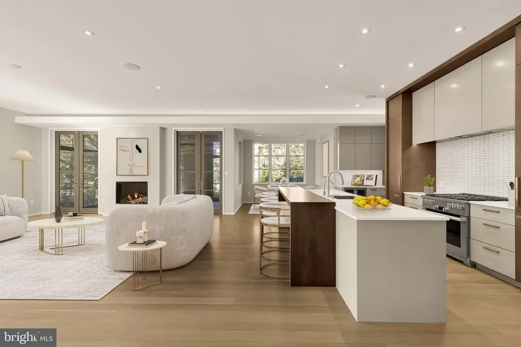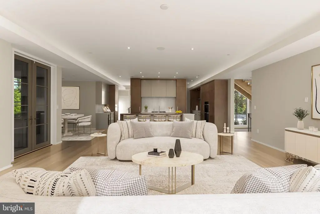 Nestled in the heart Bethesda’s prestigious Burning Tree community, 7027 Longwood Drive is a new modernist masterpiece sitting at the apex of cutting edge design and expert workmanship. The brainchild of architect John Katinas and renowned developer Paul Katinas, two names synonymous with unparalleled luxury residential projects, the home evokes cues of the great mountain estates in Aspen. Its initial approach is via a deep tree-lined driveway, culminating in a dramatic paver motor court. The residence’s architectural excellence is immediately apparent, with an artful combination of stone, wood, and glass. The front door enters into the ethereal central section of the home, flooded with natural light from floor-to-ceiling glass all around. A stunning floating staircase is immediately adjacent, situated within its dedicated double-height void. Straight ahead is the formal dining room, banquet sized and opening onto a private terrace to blur the lines between indoor and al fresco dining while simultaneously creating an effortless flow when entertaining. The formal living room, anchored by a striking fireplace wall, cozy adjoining study, and main powder room are thoughtfully grouped together on one end of the floor plan, thereby creating distinction between formal and informal areas. The latter comprises a substantial, fully open concept area. Its centerpiece is the chef’s kitchen, showcasing two-tone sleek European style cabinetry discreetly concealing a comprehensive suite of commercial grade Miele appliances. It faces the large family room area, whose fireplace wall infuses a cozy ambiance despite the scale of the space. Two sets of French doors open onto the private screened porch, featuring its own wood burning fireplace, enabling all-seasons indoor/outdoor living. A mudroom area with direct access to the attached two-car garage completes the main level. The lavish upper level primary suite’s soaring vaulted ceilings are bifurcated by substantial wooden beams. Its open dressing room is arranged akin to a luxury boutique and revolves around a large center island. Likewise, the sumptuous primary bath appears to be inspired by some of the world’s leading resort spas, showcasing a shiplap ceiling and the expected five-piece luxury accoutrements, including a walk-in steam shower. The three additional upper level bedrooms are each generously proportioned and equipped with amenities such as vaulted ceilings, walk-in closets, and ensuite baths. A well-equipped and conveniently located laundry room completes the upper level. The walk-up lower level is anchored at one end by a large recreation room featuring a wet bar and lined with wide plank white oak flooring. An additional space on the opposite end of the lower level can be utilized as a dedicated game or billiards room and sits adjacent to a full bedroom suite. A spa or fitness room adjoins a professional spa-grade bath, complete with floating vanity and a curbless walk-in shower bathed in concealed mood lighting. Throughout the home, state-of-the-art systems, including a sophisticated Lutron lighting suite and integrated surround sound throughout, create a connected lifestyle in line with modern consumer expectations. Out back, the patios and terraces all lead onto a generous 0.53-acre lot, representing one of the most level, private, and usable in this coveted neighborhood. Proximate to downtown Bethesda, award-winning schools, and country clubs while maintaining a level of complete tranquility, the location is second to none. Blending masterful craftsmanship and design with an unparalleled setting in one of the Capital Region’s most sought-after neighborhoods, 7027 Longwood Drive is a canvas for the most discerning buyer.