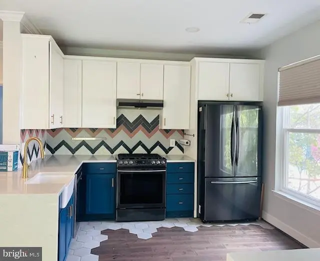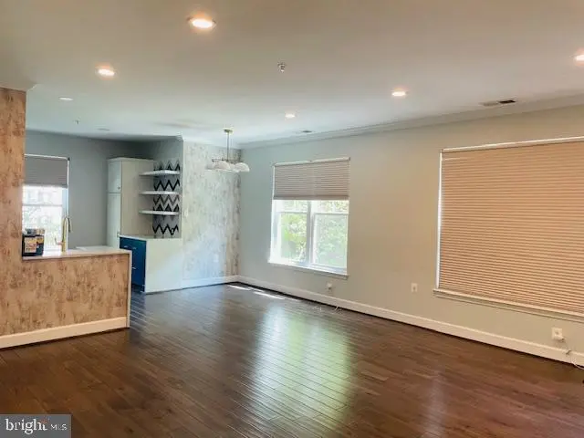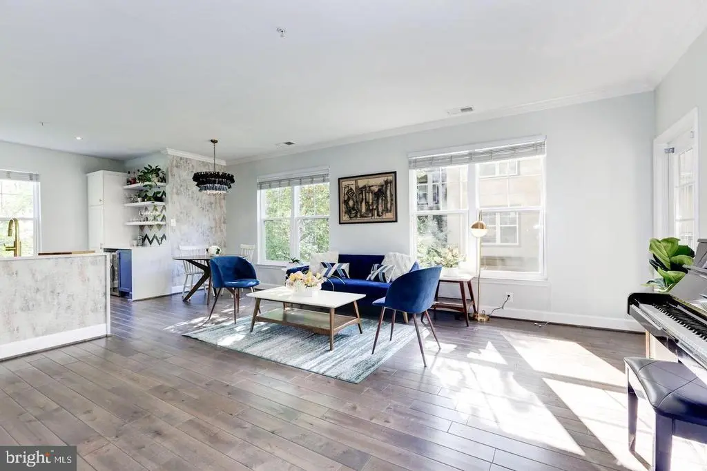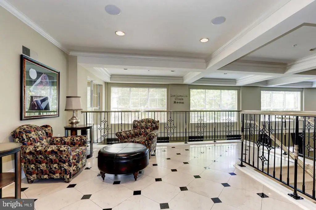 Stunning, Designer-Renovated Condo at The Gallery at White Flint! This spacious and stylish unit has been extensively upgraded with high-end finishes and thoughtful customizations throughout. Enjoy an open-concept kitchen with a shortened left wall and shrunken right wall, allowing for a seamless flow into the living area. The white quartz countertops with soft gray veining, custom bar area with wine cooler and floating shelves, and chevron-patterned backsplash add luxury and function. Rich 5" wide dark wood floors with gray undertones run throughout (excluding bathrooms/laundry), complemented by hexagon tile transitions and wider 5" baseboards. The UltraShield composite deck tiles in Honduran Mahogany bring warmth to the private patio. The home features modern lighting, custom-painted cabinetry (navy lowers, white uppers), textured wallpaper in the guest bath, and an abstract mural accent wall in the second bedroom. A chef’s dream kitchen includes Samsung stainless steel appliances (2019), a Zephyr hood, LG dishwasher (2024), farm sink, and Rev-A-Shelf organizers and custom drawers. Smart-home conveniences include a Yeti programmable lock, Ring doorbell, Hue app-controlled recessed lights, and Bali WiFi blinds in the living and kitchen areas. Other upgrades: 2020 water heater, 2018 AC unit, and noise-canceling windows. Two EV chargers in garage Truly one of the most beautifully customized units in the building—modern, functional, and move-in ready!